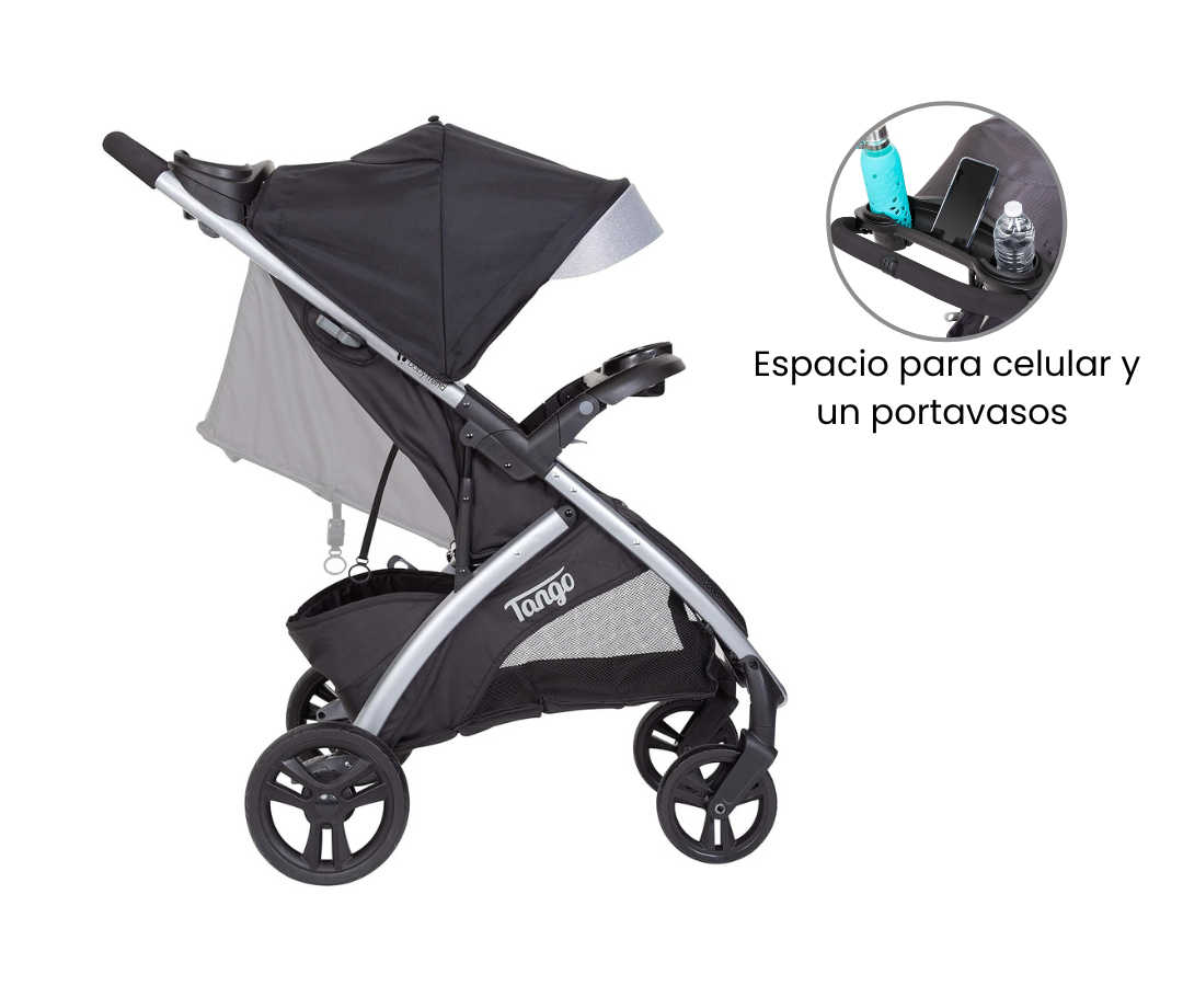 Además tiene un posicionador de teléfono celular junto con un portavasos flexible y extra profundo para adaptarse a tus necesidades. Disfruta de una cesta de almacenamiento grande con acceso delantero y trasero y la compatibilidad con todos los asientos de coche para bebés Baby Trend.