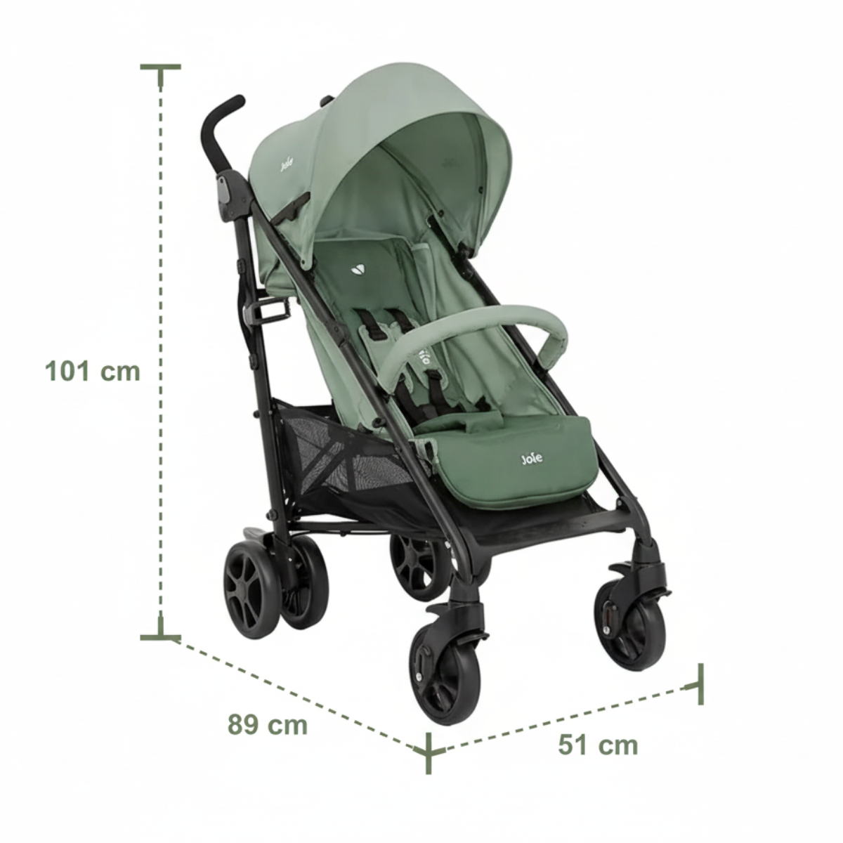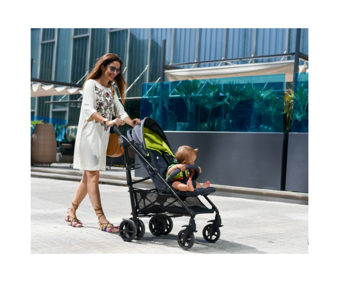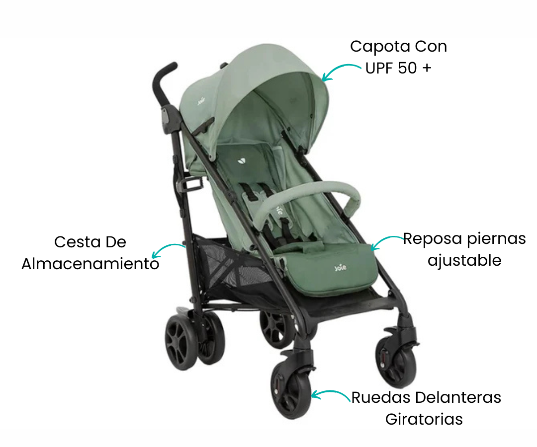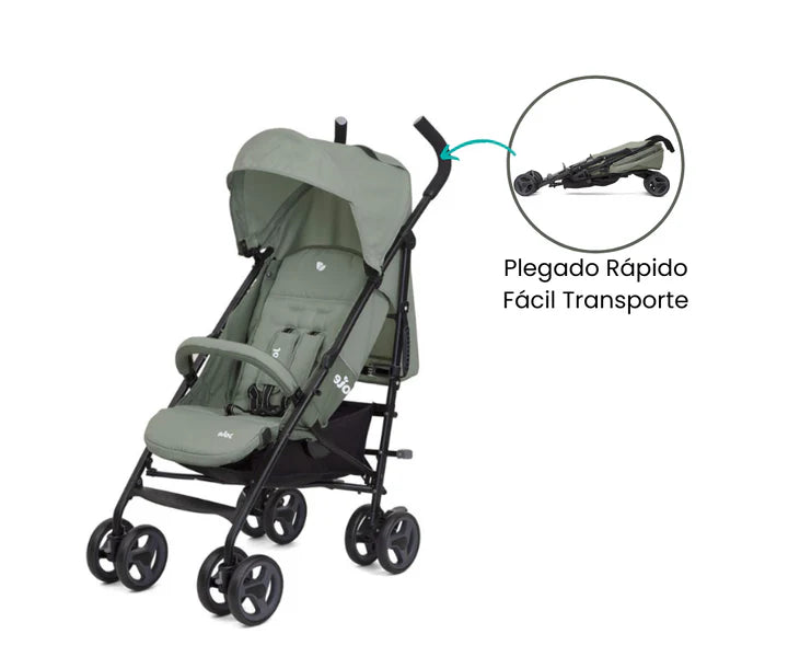 El cochecito con paraguas de tamaño pequeño, cuenta con un mecanismo de plegado único. El respaldo plano, la capota extra grande y el sistema de cinturón con acolchado SoftTouch, hacen que sea cómodo incluso para los pasajeros más pequeños.