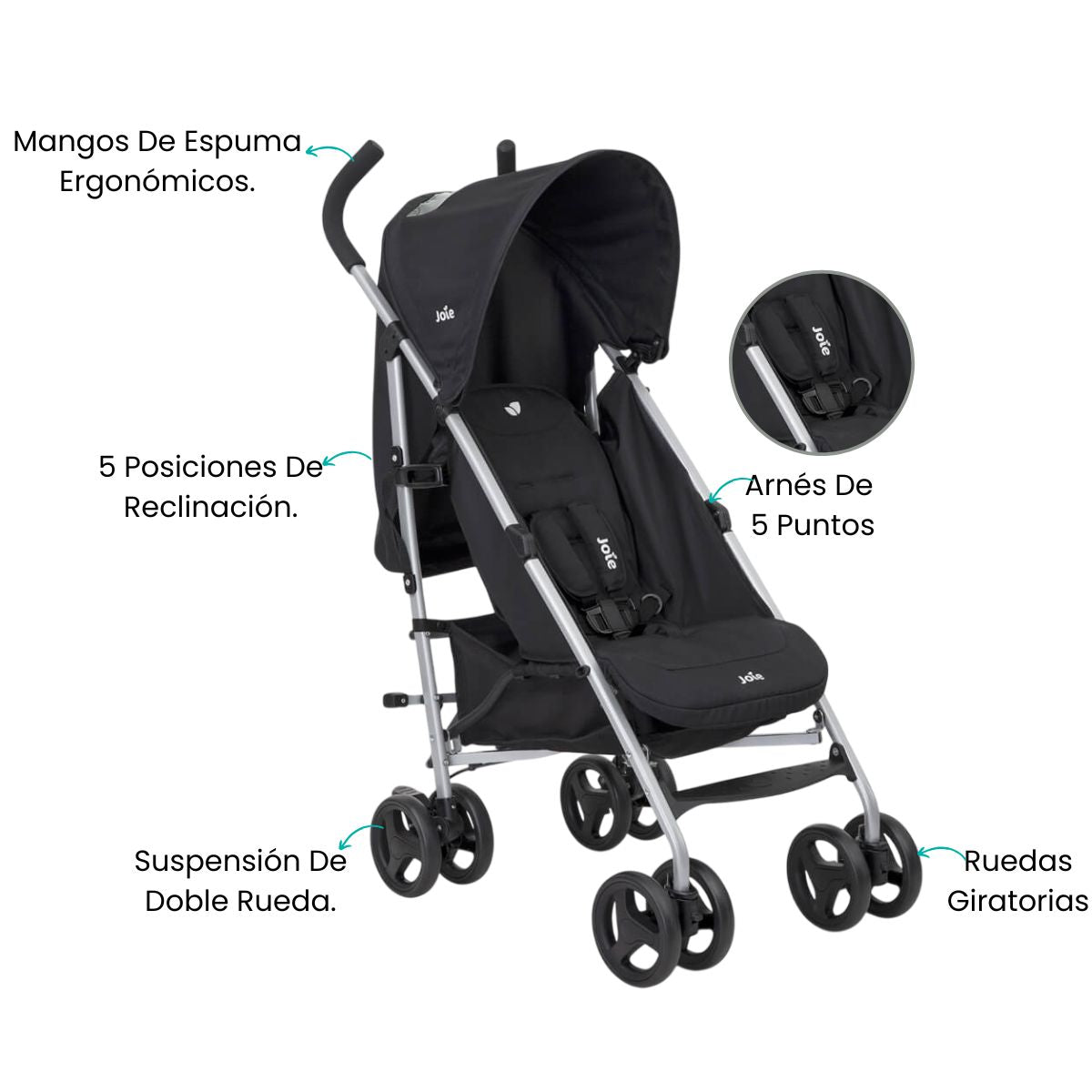 Con un diseño pensado para la comodidad y la practicidad, este cochecito está listo para funcionar con un chasis ligero que facilita su manejo. Su plegado compacto tipo paraguas lo hace ideal para espacios reducidos y su práctico asa de transporte permite llevarlo fácilmente a donde quieras. Ya sea en la ciudad o en el campo, este cochecito hace que cada paseo sea sencillo y sin complicaciones.