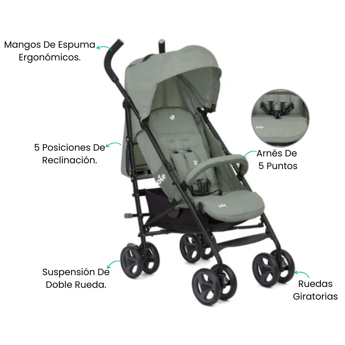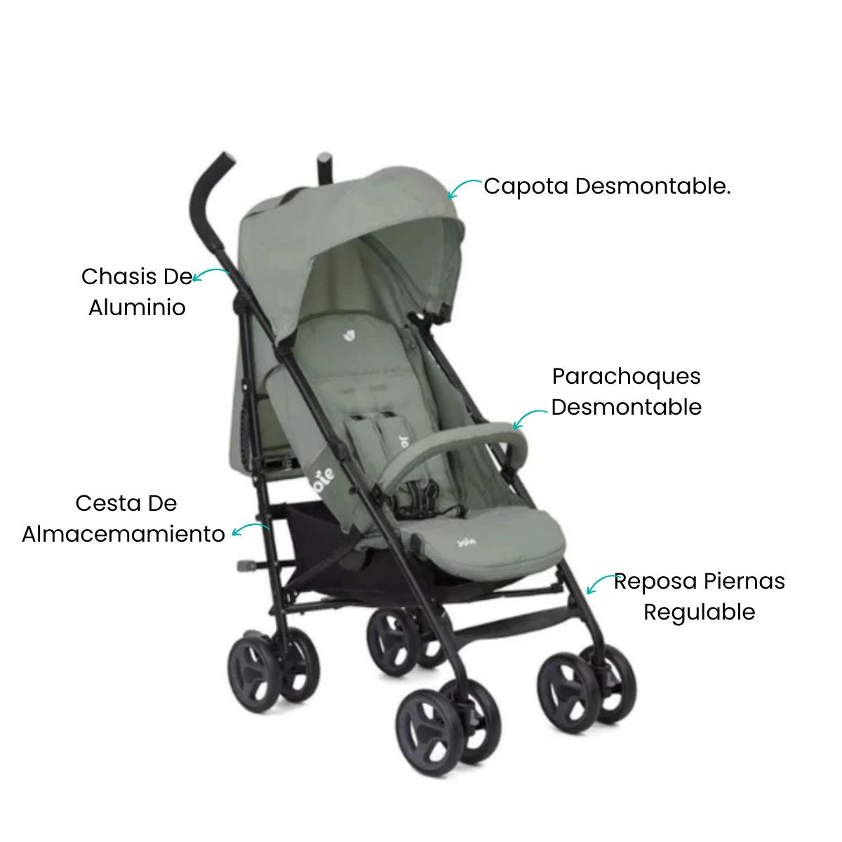 Con un diseño pensado para la comodidad y la practicidad, este cochecito está listo para funcionar con un chasis ligero que facilita su manejo. Su plegado compacto tipo paraguas lo hace ideal para espacios reducidos y su práctico asa de transporte permite llevarlo fácilmente a donde quieras. Ya sea en la ciudad o en el campo, este cochecito hace que cada paseo sea sencillo y sin complicaciones.