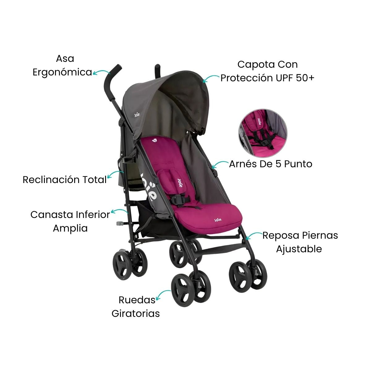 El cochecito Joie está pensado para acompañarte en las primeras aventuras con tu bebé, desde sus primeros días hasta los tres años. Su diseño ligero y moderno permite disfrutar de cada paseo con facilidad, mientras el pequeño explora el mundo de forma segura y cómoda.
