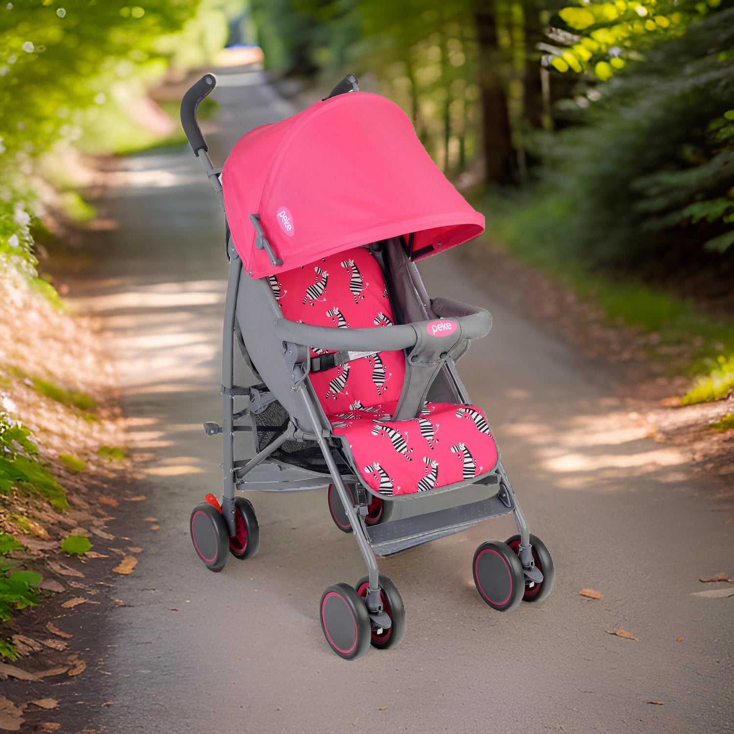 Descubre la versatilidad en movimiento con el Coche Paraguas Pink Zebra Peke, tu práctico compañero de viaje diseñado para mantener a mamá y mini paseando con facilidad. Con un diseño moderno y funcional, este cochecito ofrece comodidad y estilo en cada paseo. Su construcción inteligente y su fácil manejo hacen que sea la elección perfecta para padres activos.
