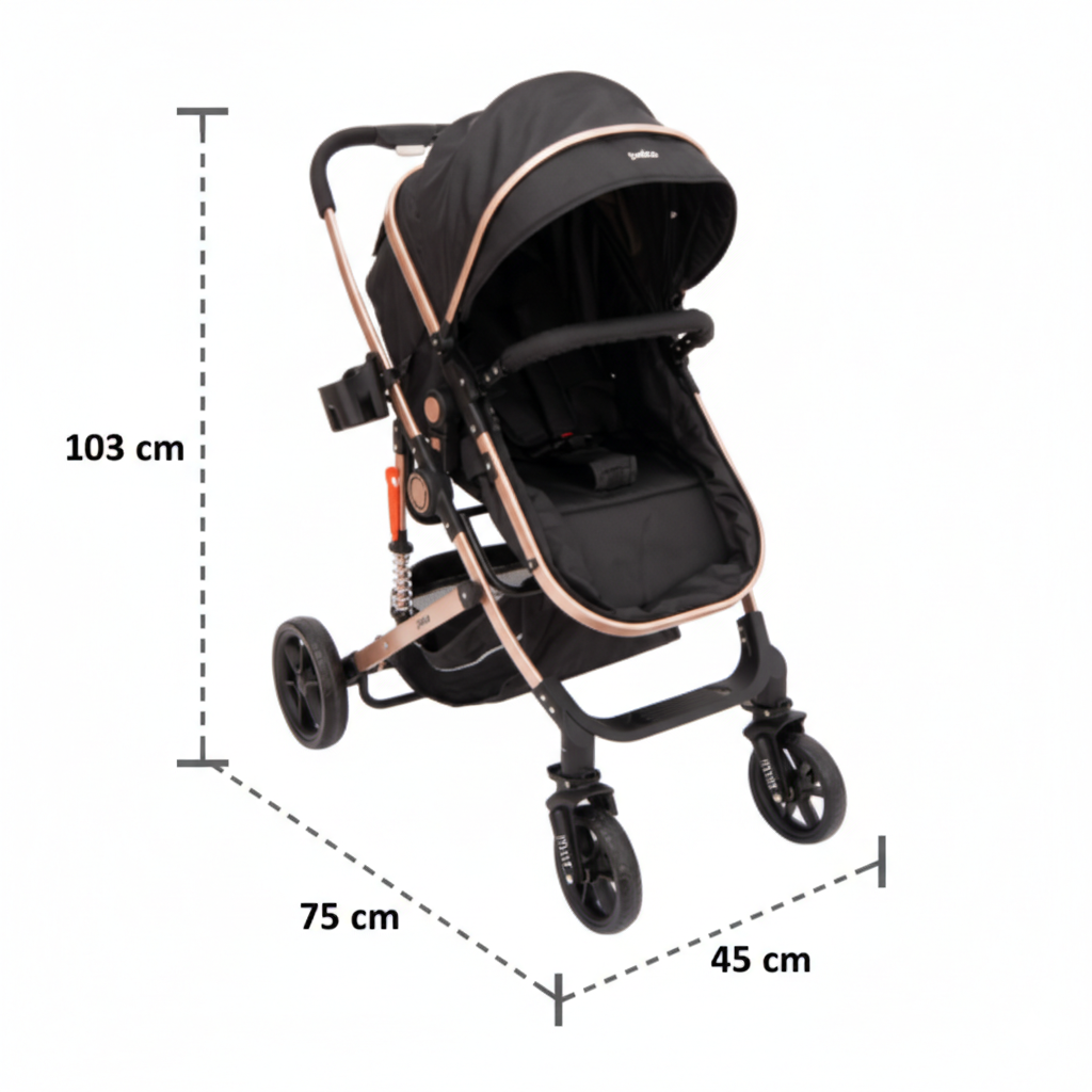 Este cochecito para bebé está diseñado para acompañarte desde los primeros días de vida, ofreciendo un sistema versátil que se adapta a cada etapa del crecimiento. Su diseño permite usarlo como coche con capazo y luego como silla de paseo, brindando comodidad, protección y estabilidad en cada salida.