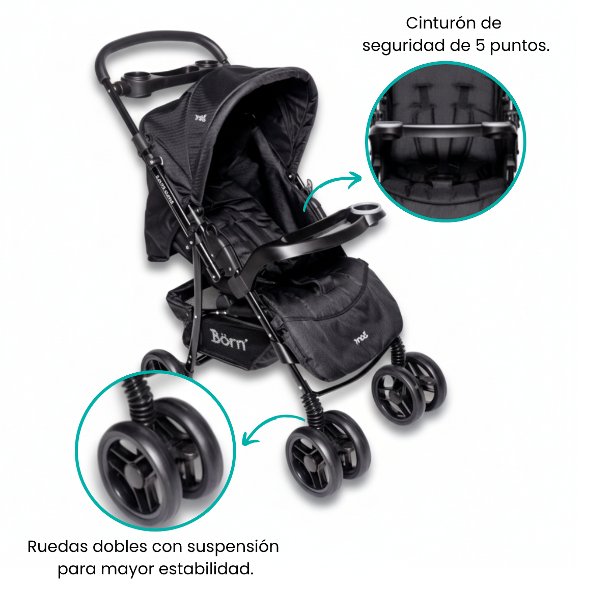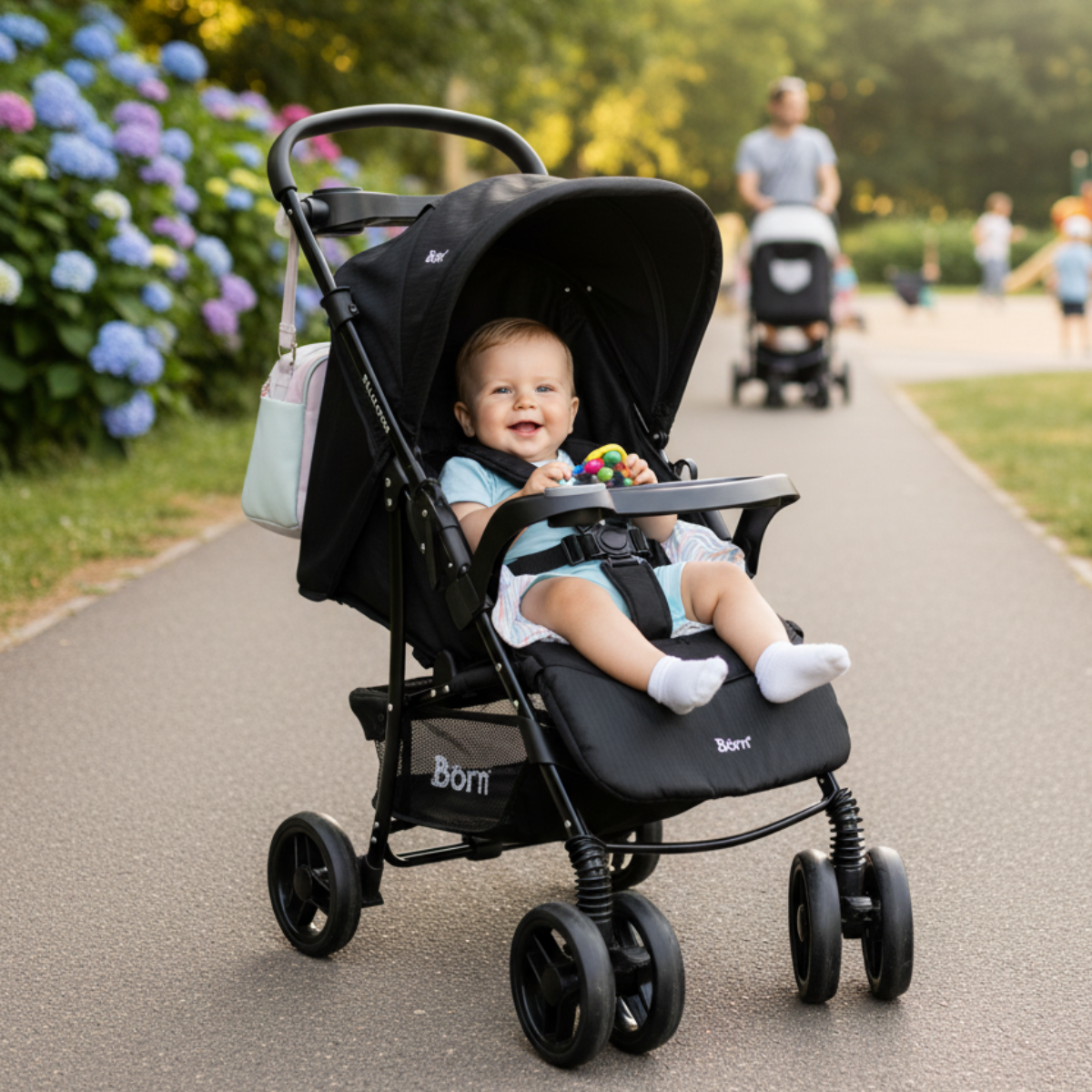 Imagina cada salida con tu bebé como una experiencia cómoda y segura. El coche Born Road Style está diseñado para acompañar a las familias modernas que buscan practicidad sin dejar de lado el diseño. Su colore legante y su estructura ligera lo convierten en el aliado perfecto tanto para las rutinas diarias como para los paseos especiales. Con este cochecito, cada recorrido se convierte en un momento de conexión y disfrute.