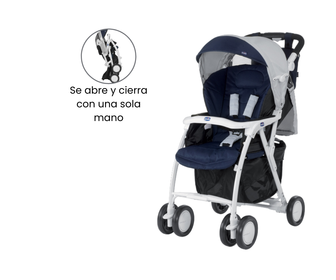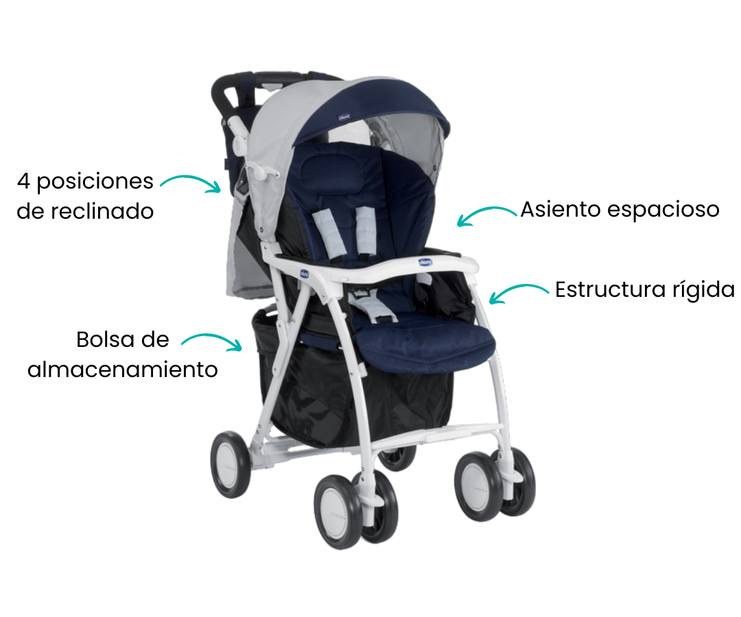 El asiento de esta silla proporciona un sorprendente espacio interior en una estructura compacta. El respaldo, dotado de una estructura rígida, asegura una sujeción óptima, garantizando la seguridad y el bienestar del bebé durante el paseo.