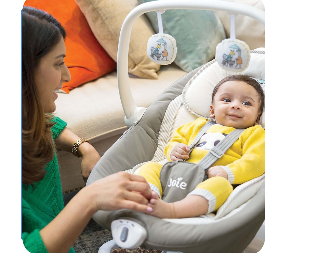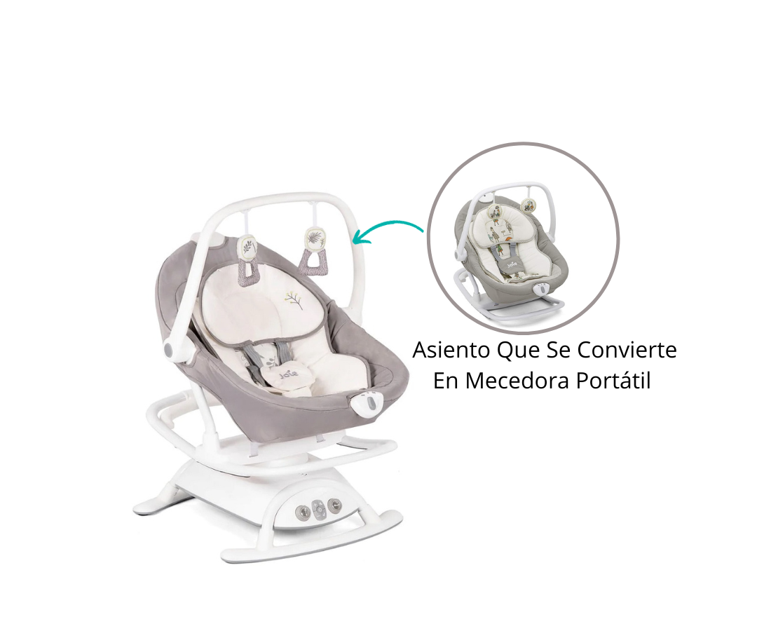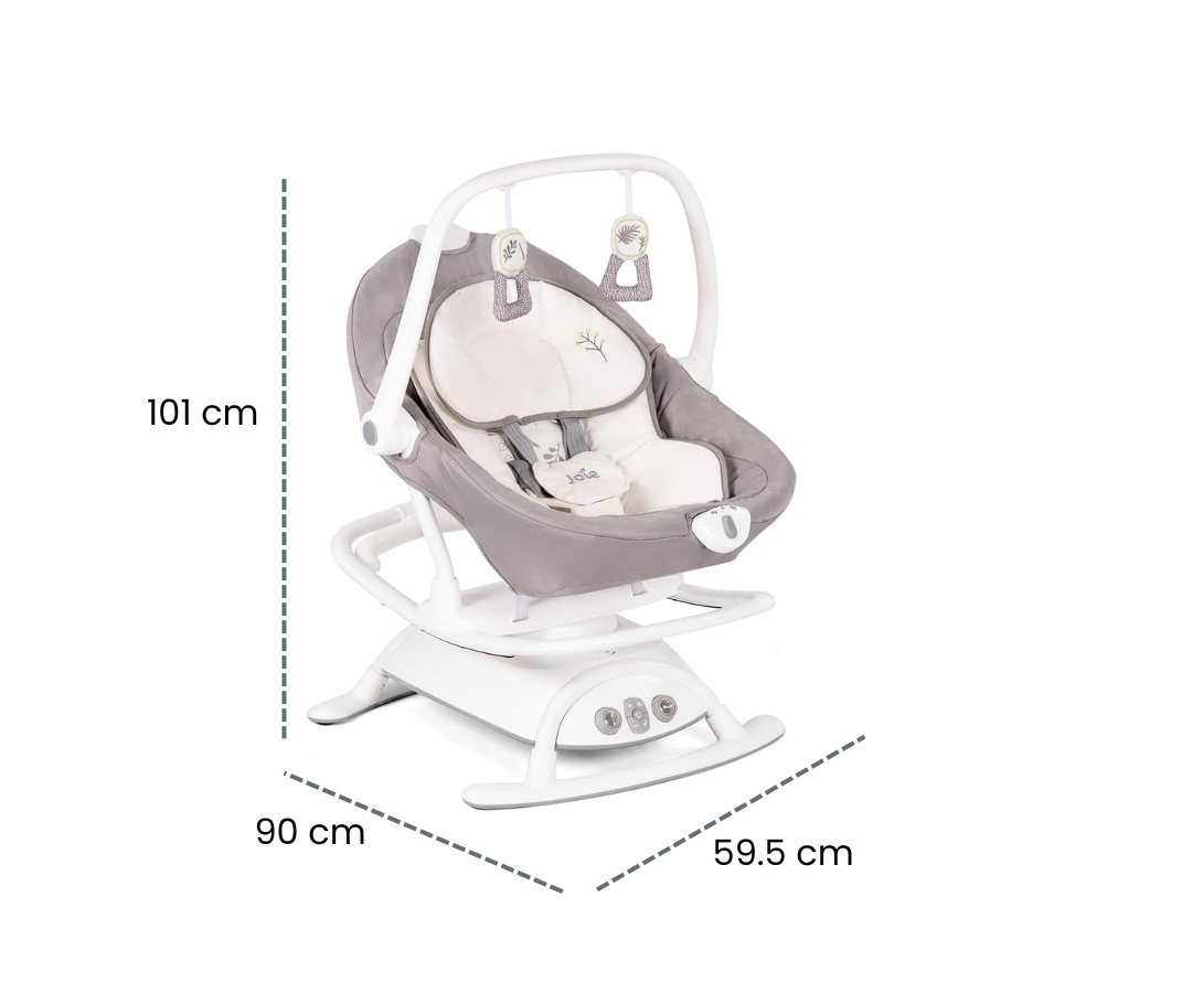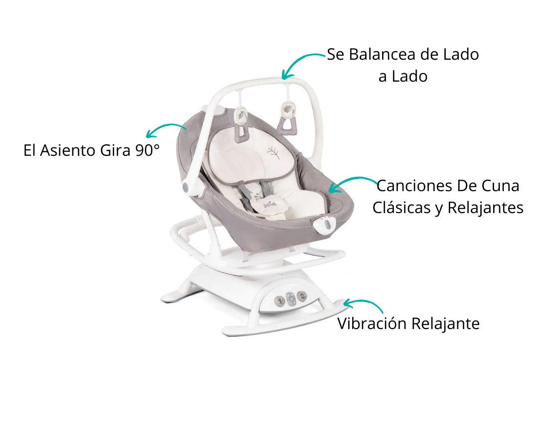 El columpio ha sido diseñado con inspiración en los movimientos humanos, imitando los suaves balanceos y giros que una madre proporciona para ofrecer la máxima comodidad a su hijo. Con la capacidad de balancearse, deslizarse y girar 90° con solo presionar un botón, este columpio proporciona una experiencia multidireccional única que garantiza momentos de calma y diversión para su pequeño.
