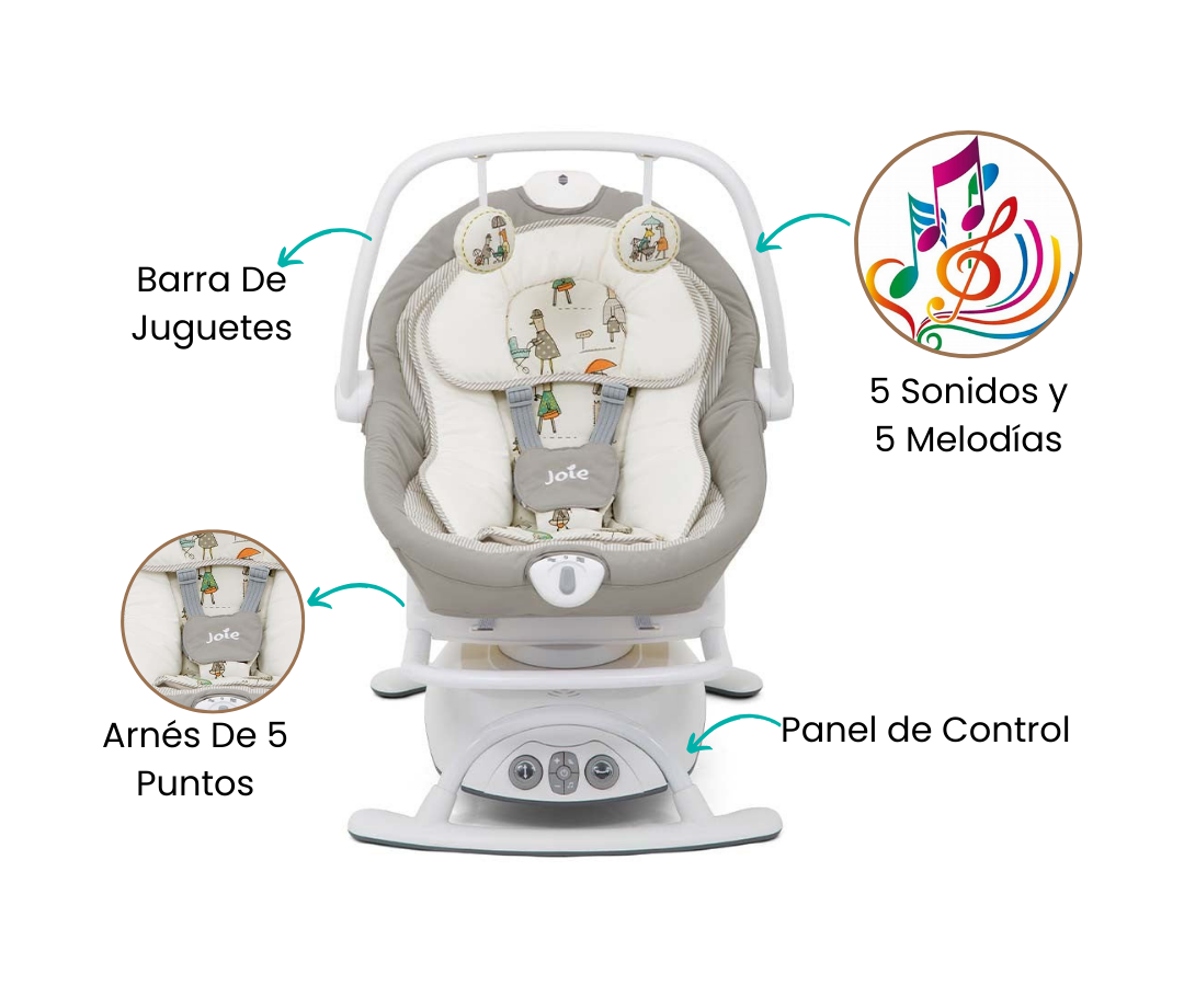 Desde suaves balanceos hasta movimientos intensos, nuestra hamaca extraíble y ultraligera se transforma de una suave mecedora a un divertido balancín portátil. Diseñada para adaptarse al crecimiento y la creciente curiosidad de tu bebé, ofrece variados balanceos y juguetes integrados. Una solución versátil para mantener a tu pequeño entretenido y cómodo en cada etapa de su desarrollo.