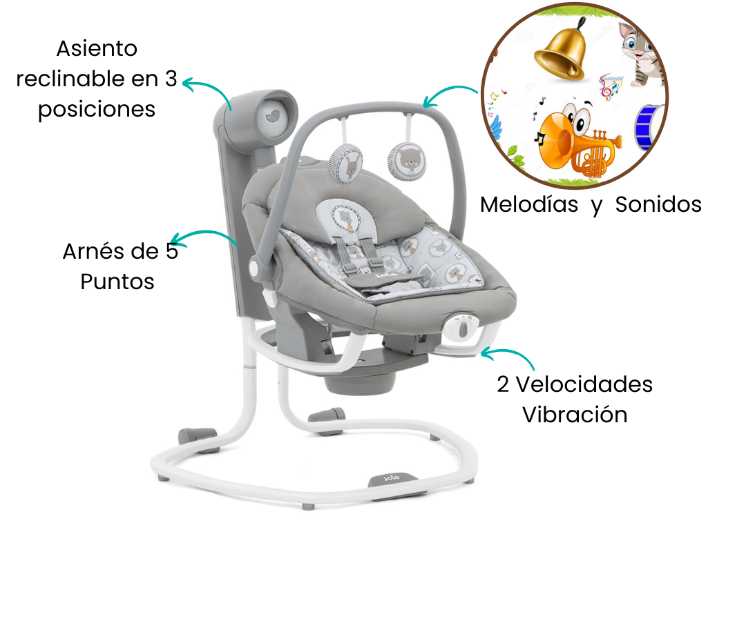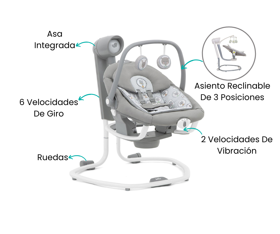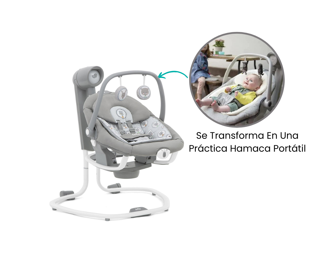Descubre la serenidad con los Columpios Serina 2in1 - Infant Swing & Rocker, calmando a tu bebé con su balanceo personalizable: Adelante y atrás o de lado a lado. Además, la versatilidad es clave, ya que el asiento se puede quitar para convertirse en una mecedora independiente, brindando comodidad en cualquier lugar.