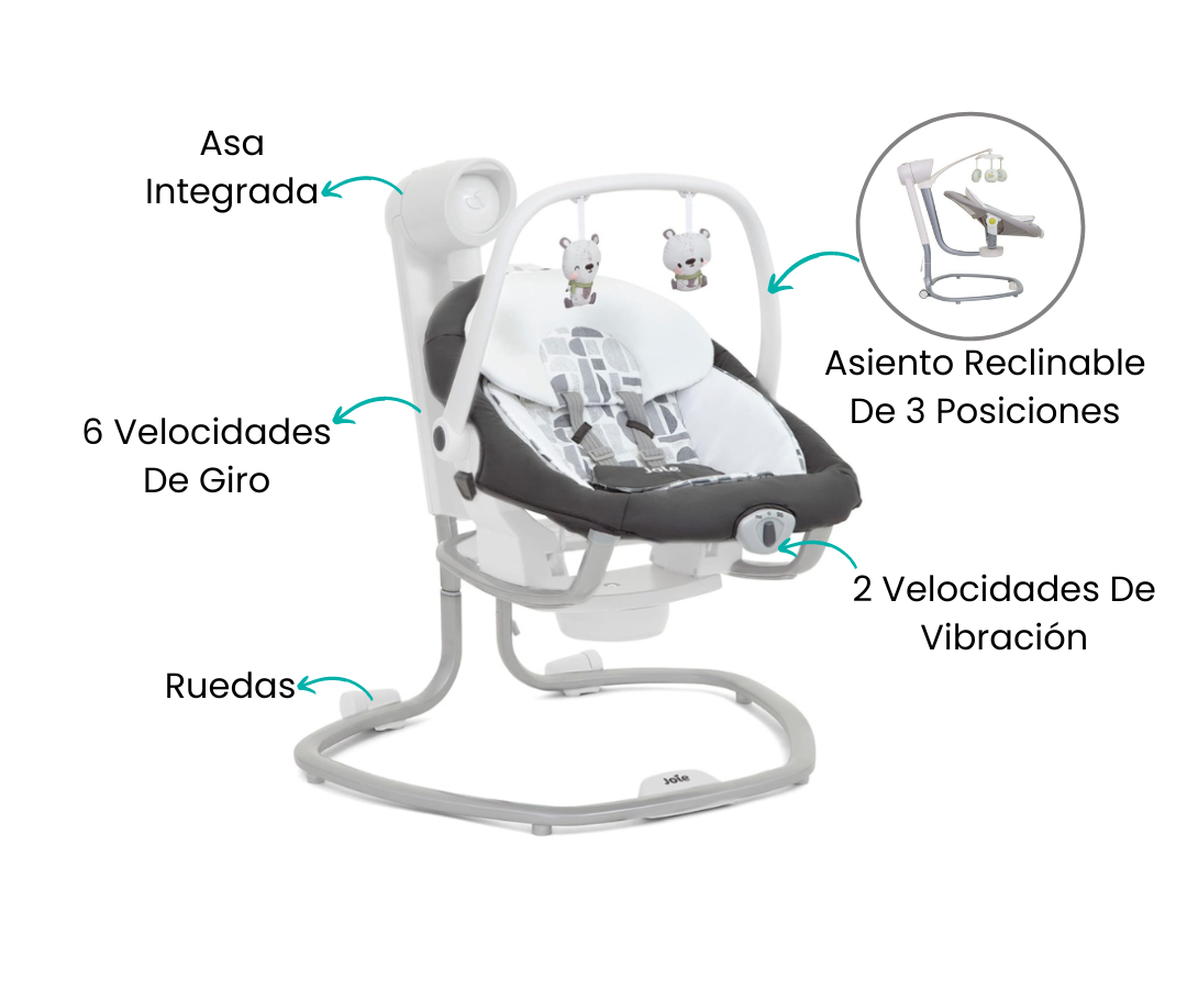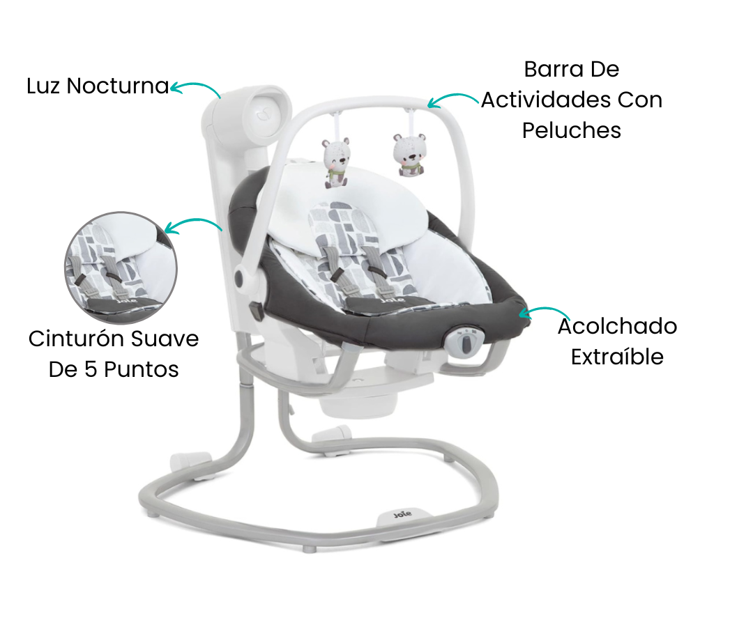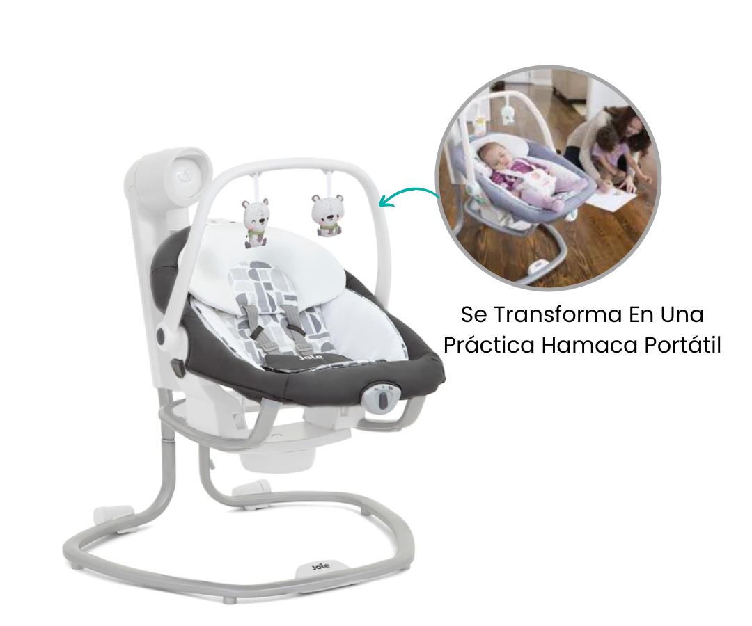 Descubre la serenidad con los Columpios Serina 2in1 - Logan, calmando a tu bebé con su balanceo personalizable: adelante y atrás o de lado a lado. Además, la versatilidad es clave, ya que el asiento se puede quitar para convertirse en una tumbona independiente, brindando comodidad en cualquier lugar.