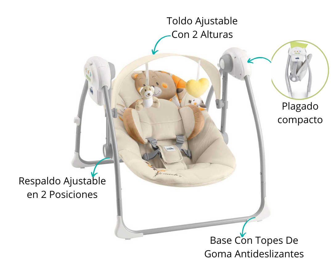 Descubre el columpio para bebé Sonnoleto de Cam, diseñado para brindar entretenimiento y confort. Cn melodías y sonidos integrados, tu bebé disfrutará de momentos de diversión y relajación. Este columpio ofrece la combinación perfecta de suavidad y seguridad para el descanso y la diversión del pequeño. Además, su diseño ergonómico y ajustable garantiza la comodidad en cada uso. Con Sonnoleto de Cam, crearás un ambiente acogedor y divertido para tu bebé.