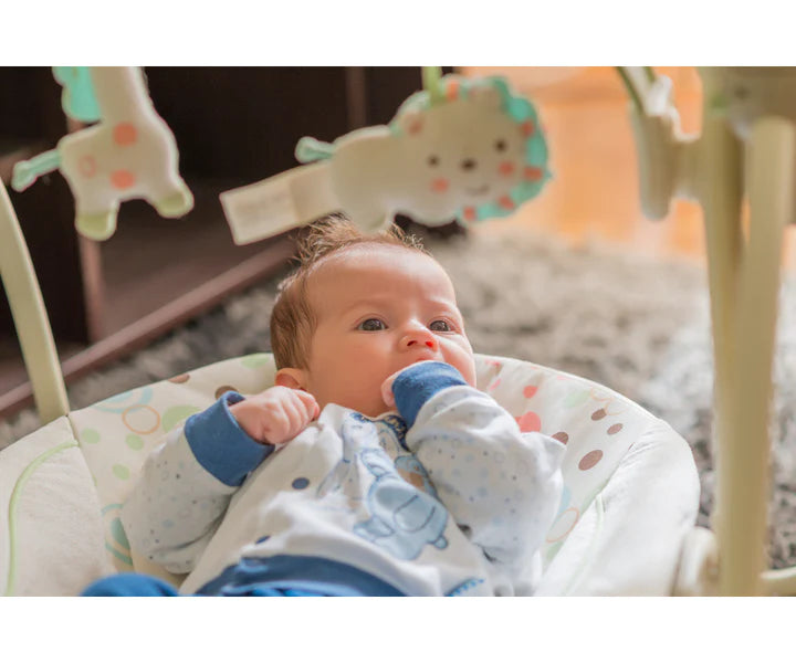 La silla ofrece la solución ideal para el entretenimiento y la relajación de tu bebé. Inicia suavemente como un columpio y se transforma en una vibrante silla rebotadora completa con barra de juegos. Bríndale horas de diversión segura y confort inigualable a tu bebé