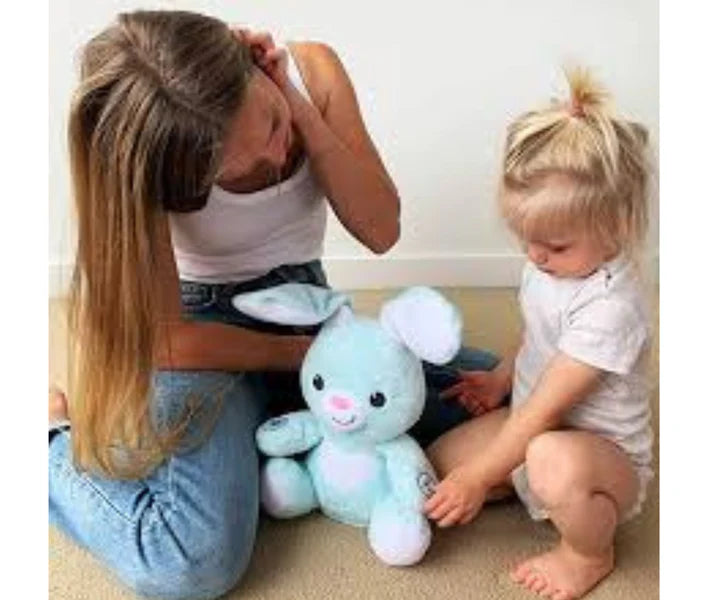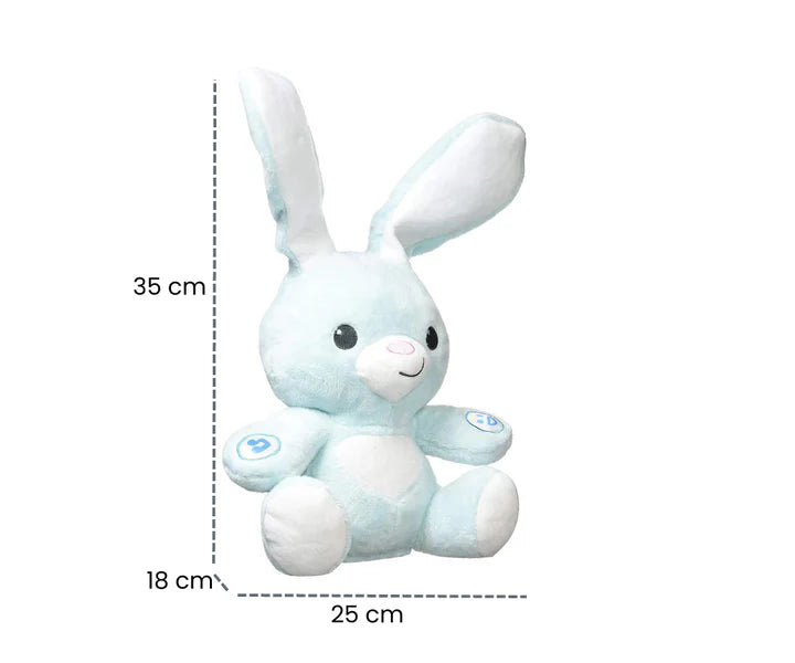 Los sueños de su hijo serán mucho más dulces y acogedores con los animales de peluche WinFun. El Conejo mueve sus orejas y cantar melodías alegres durante todo el día y emitir una luz relajante desde su vientre mientras cantas suaves canciones de cunas. Es suave al tacto y tiene dos botones que facilitan activarlo. Y si tu bebé solo quiere abrigarse, el conejito es un peluche suave y tierno que ya no querrás separar.
