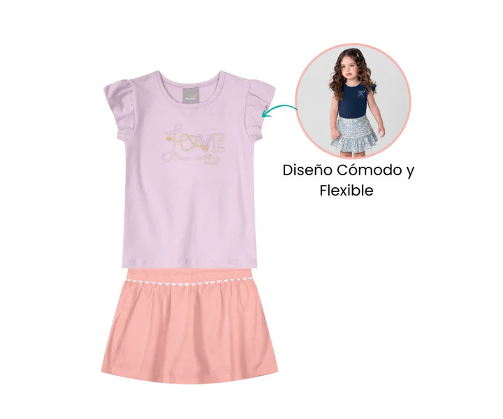 Conjunto Para Nenas Blusa Y Falda Shorts Mundi