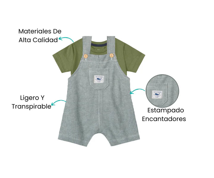 Este conjunto es perfecto para brindar a tu bebé la libertad de movimientos que necesita para descubrir el mundo a su alrededor. Su diseño cómodo y ligero le permite explorar con total comodidad, mientras tú disfrutas viendo cada paso y descubrimiento.
