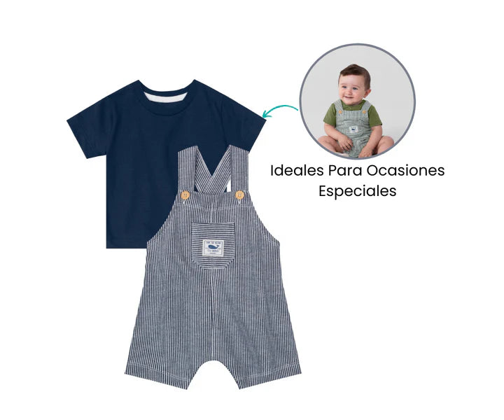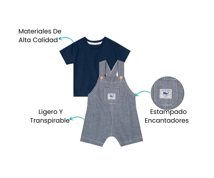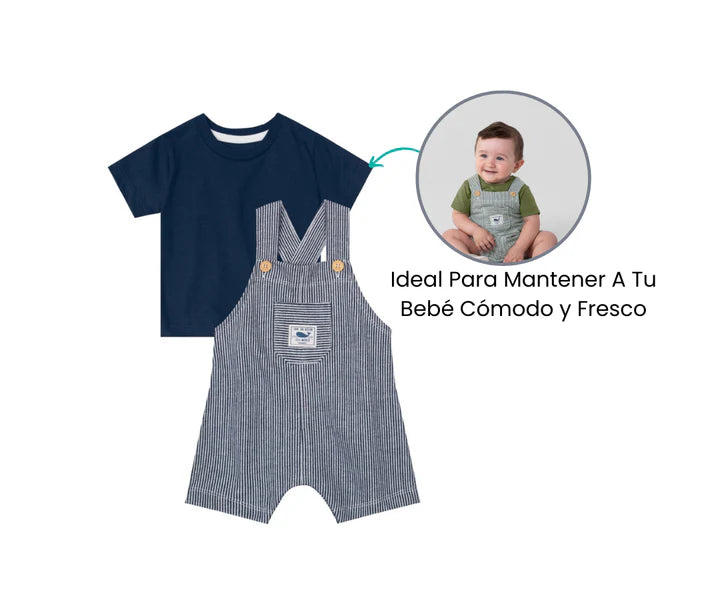 Este adorable conjunto para bebé niña incluye una blusa y una jardinera confeccionados con tejido suave, ofreciendo un look fresco y encantador para los días cálidos. La blusa cuenta con detalles delicados y un diseño holgado que brinda comodidad, mientras que el pantalón corto es ligero y fácil de llevar.