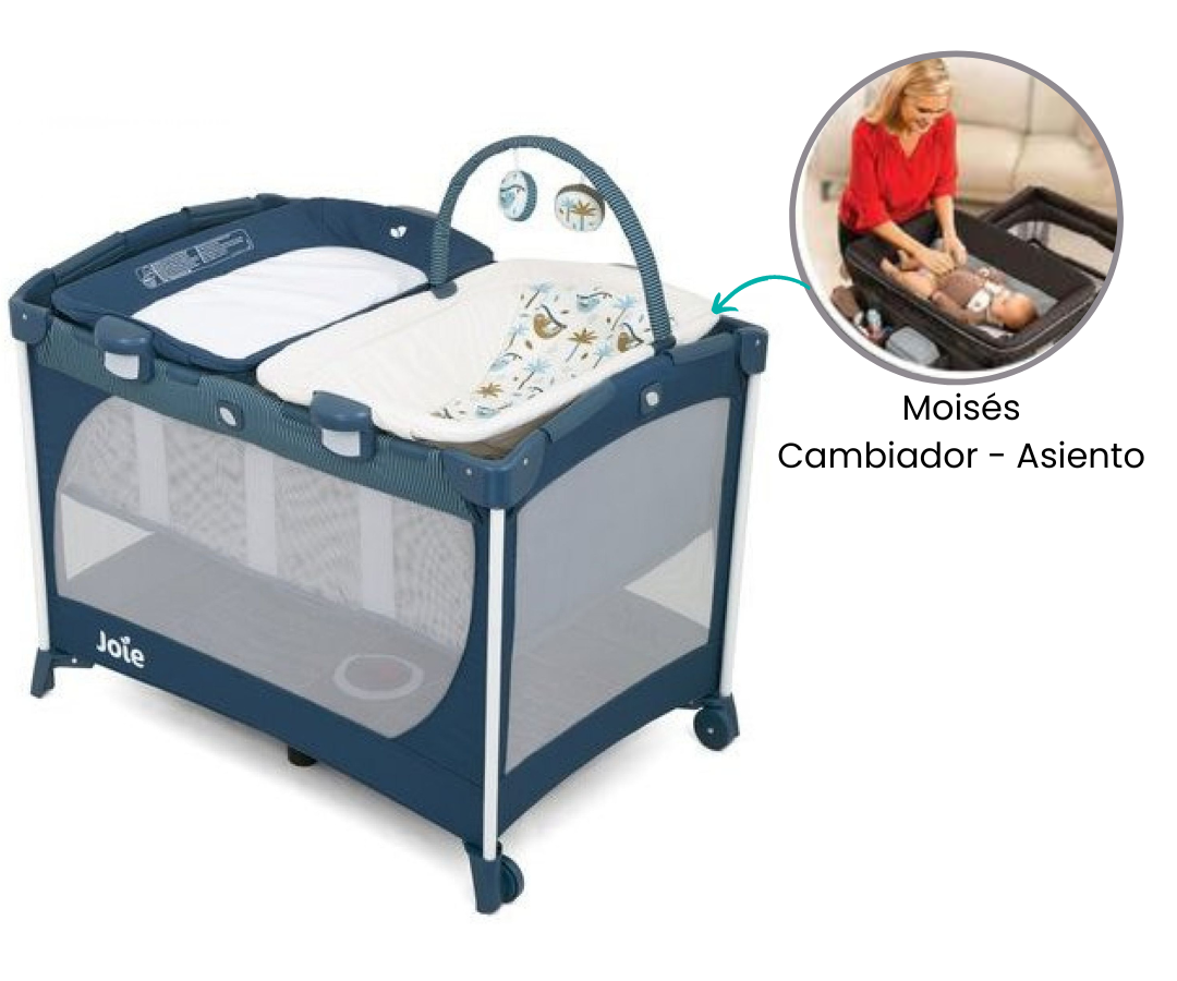 Prepárate para viajar al instante con nuestro sistema de mezcla y combinación. Equipado con un cambiador incluido y asientos de repetición que se activan y quitan con un clic rápido, proporcionando comodidad y facilidad en tareas a diferentes alturas. Además, cuenta con un moisés de tamaño completo debajo, ofreciendo versatilidad para las necesidades de tu pequeño con solo un movimiento.