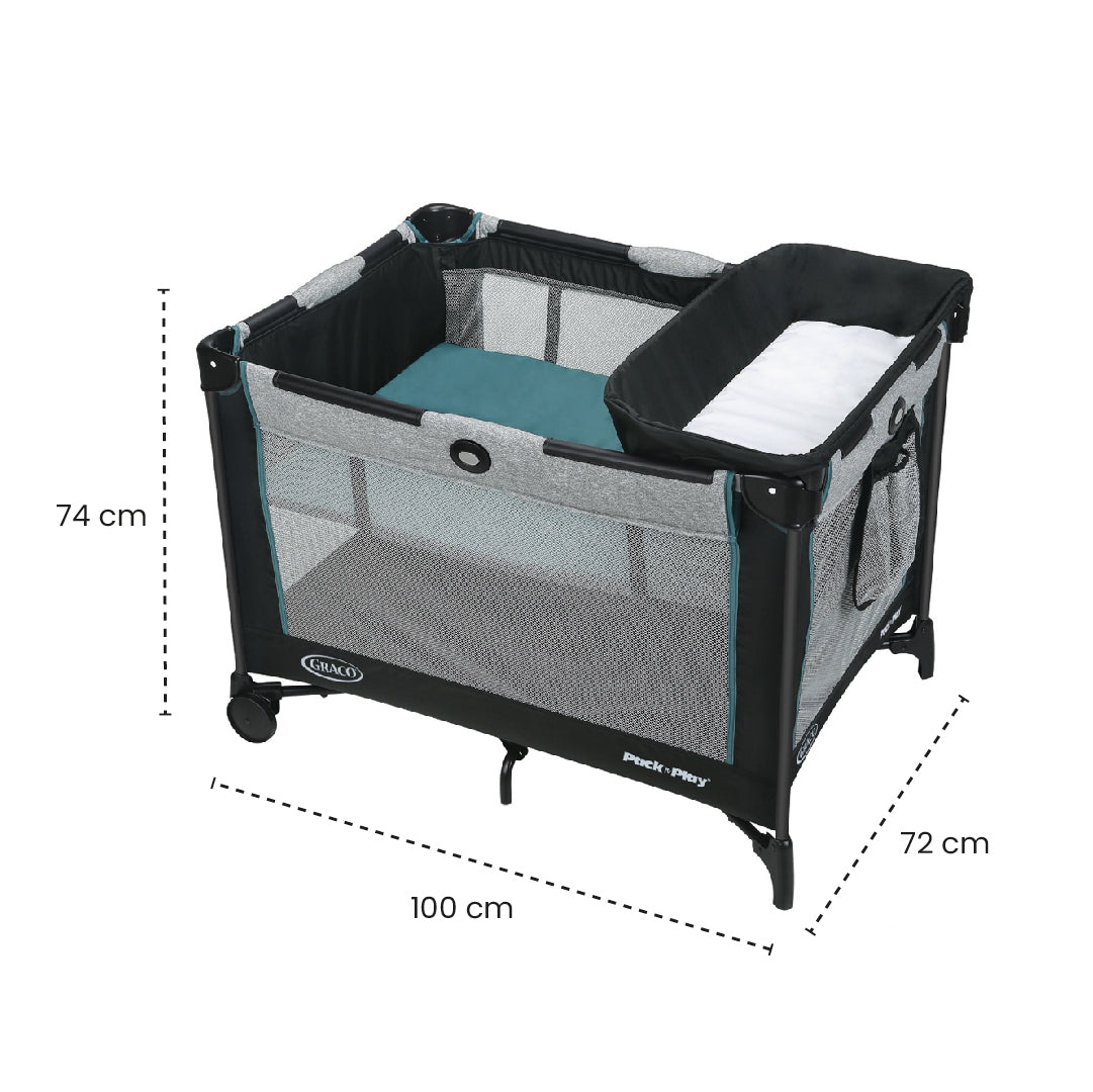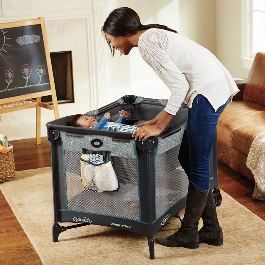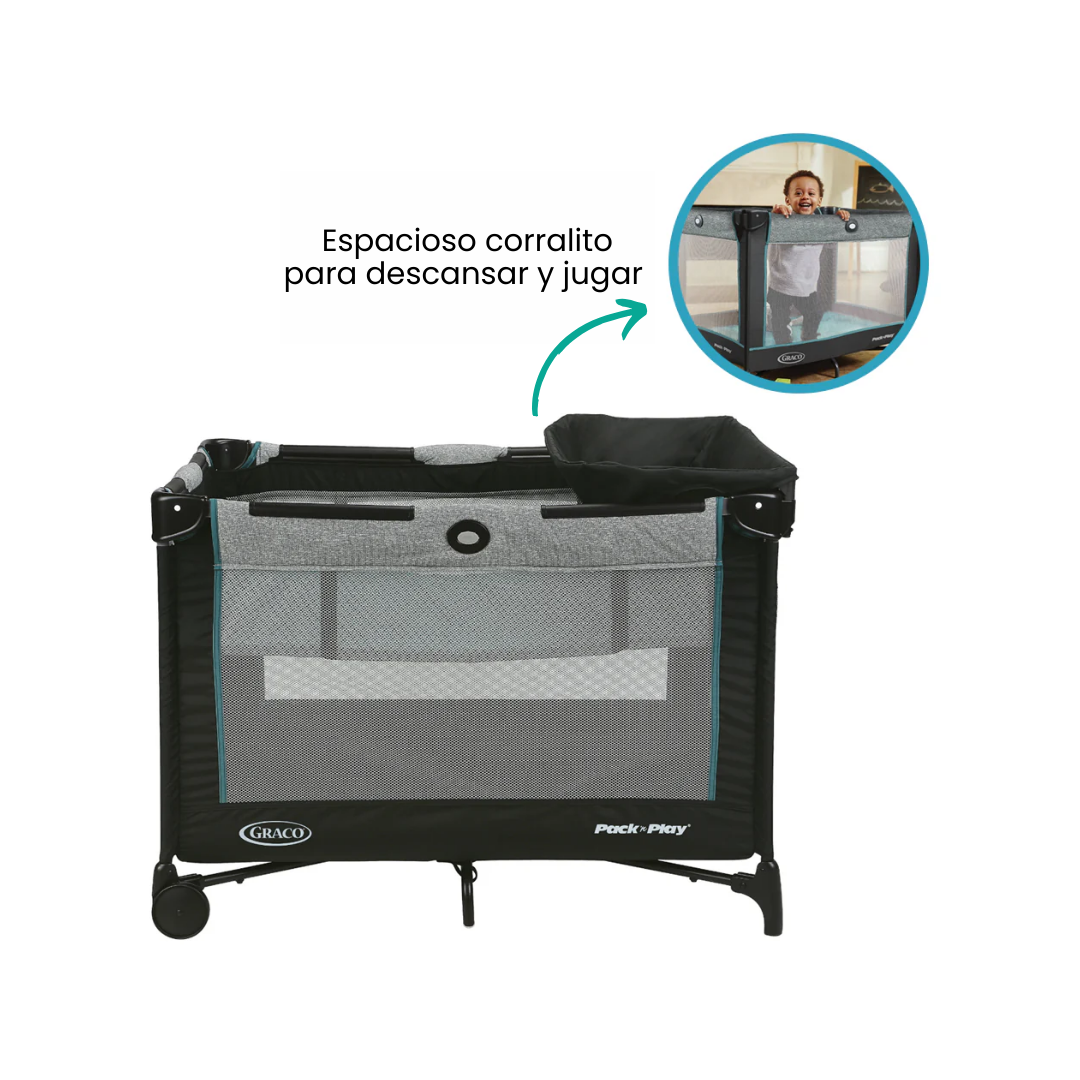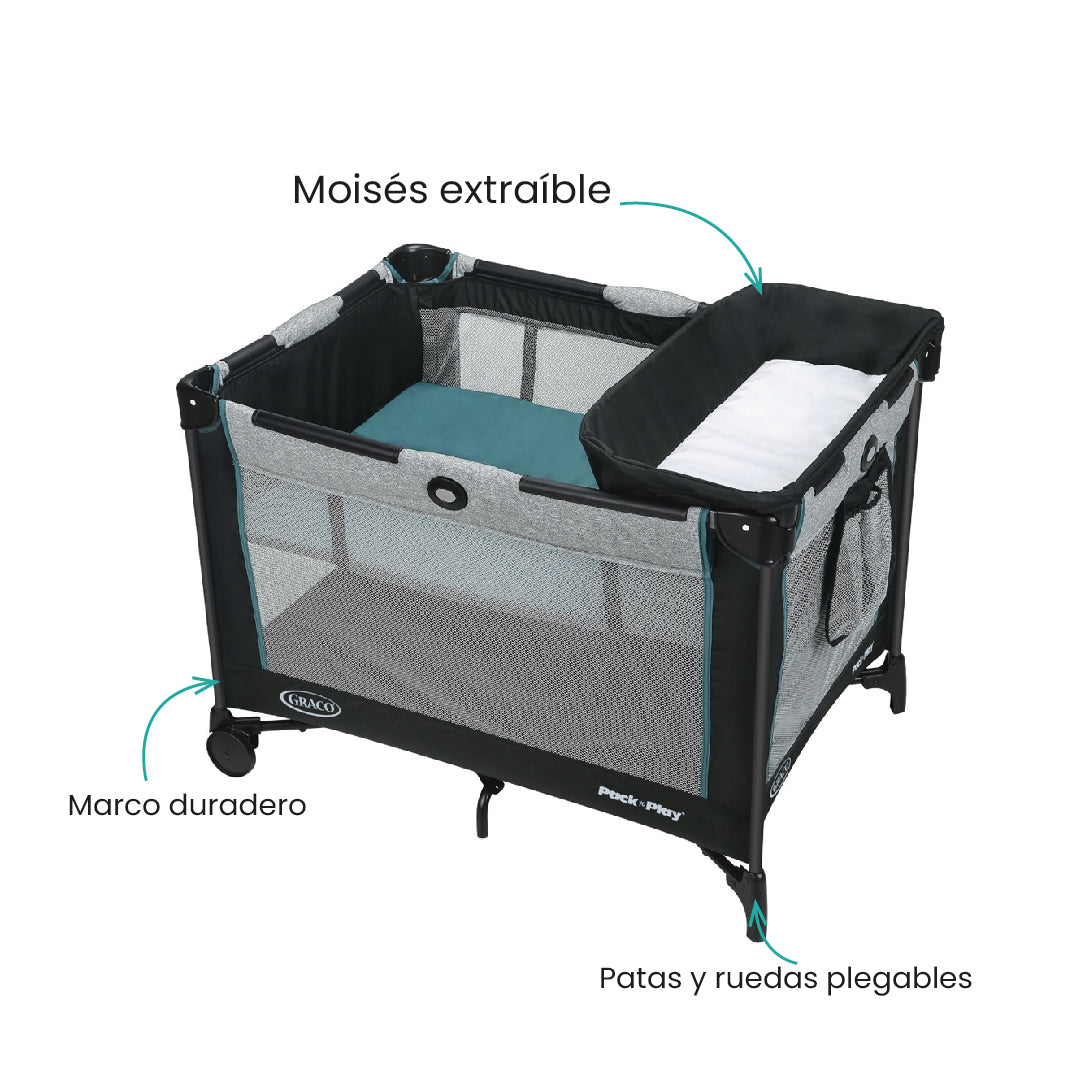 El moisés extraíble de tamaño completo del corralito proporciona al bebé un espacio cómodo y seguro para tomar una siesta, tanto en casa como fuera. Gracias a las patas y ruedas plegables, se pliega de manera compacta, facilitando su almacenamiento y convirtiéndolo en el compañero perfecto para tus viajes.