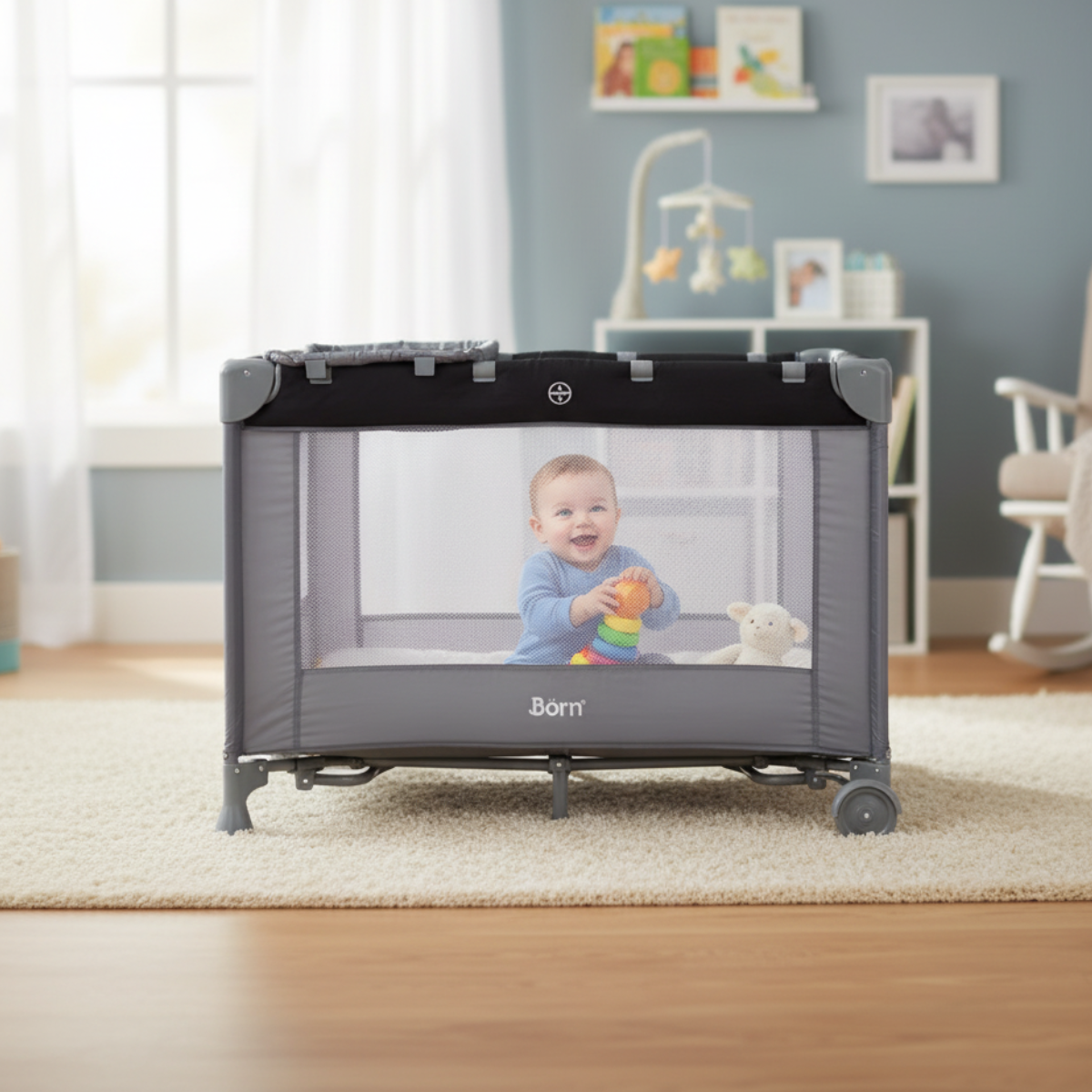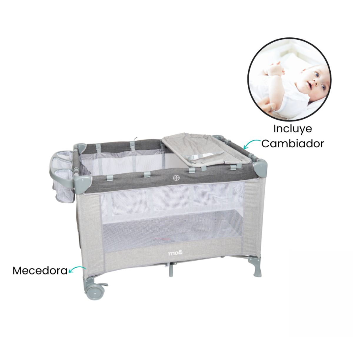 La práctica cuna, corral y mecedora ha sido creada pensando en el bienestar y crecimiento de tu bebé. Con un diseño versátil, acompaña cada momento, desde el descanso hasta el juego activo. Su estructura brinda seguridad, confort y libertad de movimiento en un solo producto. Perfecta para mantener a tu pequeño feliz y relajado en cualquier espacio del hogar. Una solución todo en uno que combina funcionalidad, estilo y tranquilidad para toda la familia.