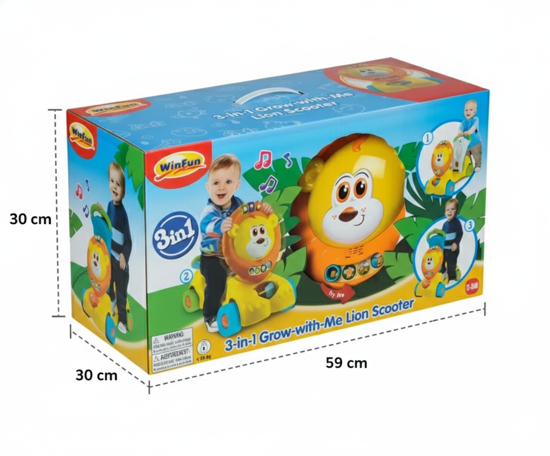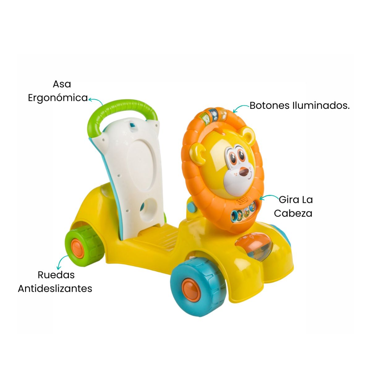 El León Correpasillos 3 en 1 de WinFun es la solución perfecta para acompañarlo en esta etapa de forma divertida y segura. Este juguete no solo funciona como correpasillos, sino que se transforma en motocicleta y patinete, ofreciendo múltiples formas de juego. Su melena incluye luces y sonidos, y su barba cuenta con 4 opciones sonoras que tu bebé puede elegir. Además, un rodillo de cuentas giratorio en las patas delanteras añade más diversión.