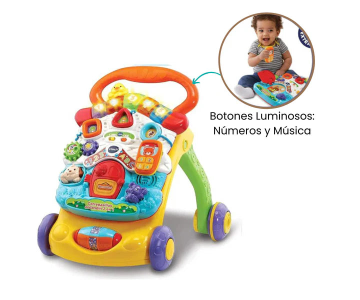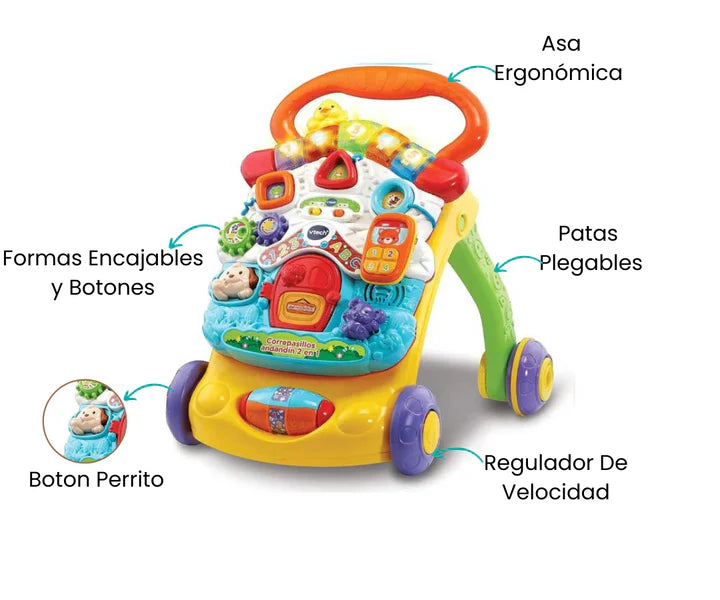 Convierte cada momento en una aventura con el Correpasillos Andandín 2 en 1 de VTech, un andador interactivo y panel de actividades extraíble. Perfecto para jugar en el suelo o dar paseos, este juguete se adapta a las necesidades de tu bebé mientras crece. Su diseño cómodo y compacto garantiza que la diversión no se detenga, ya sea en casa o en movimiento.