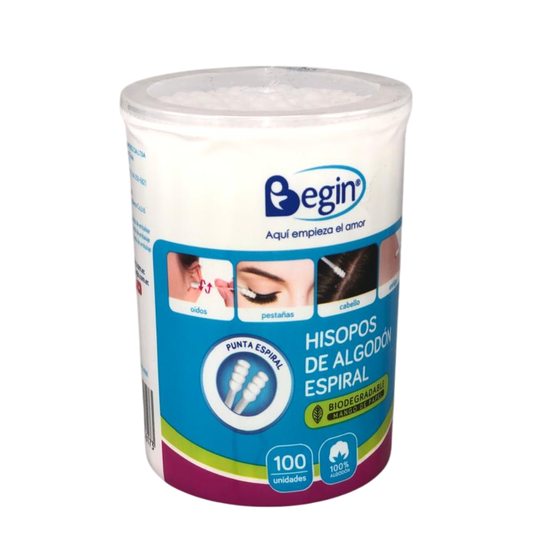 Cotonetes de algodón con punta en forma de espiral, 100 unidades, hechos de 100% de algodón absorbente y mango de papel biodegradable.
