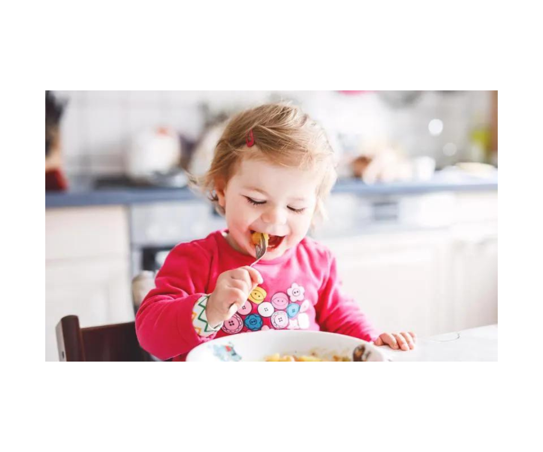 Las puntas redondeadas del tenedor garantizan una mayor seguridad en las manos del niño, mientras que el mango ergonómico con inserciones elevadas facilita un agarre cómodo, fomentando la autonomía en cada comida.