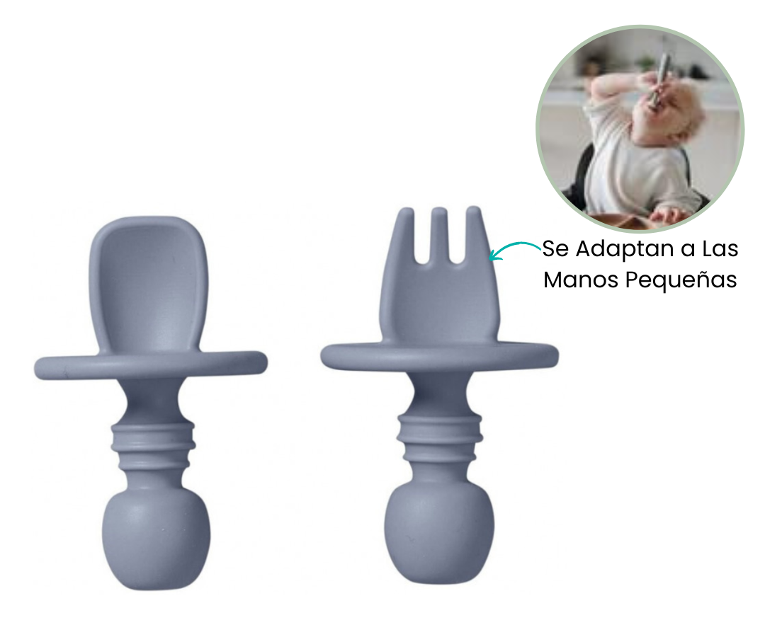 Descubre la elección ideal para tu bebé con estos cubiertos de silicona. Con una cuchara y un tenedor diseñados ergonómicamente para adaptarse a las manos pequeñas de tu pequeño, facilitan su agarre durante la alimentación. Este conjunto ofrece comodidad y seguridad, asegurando una experiencia placentera y sin complicaciones en cada comida.
