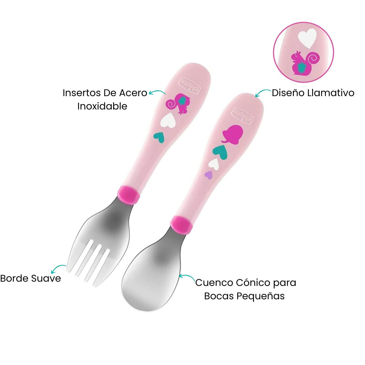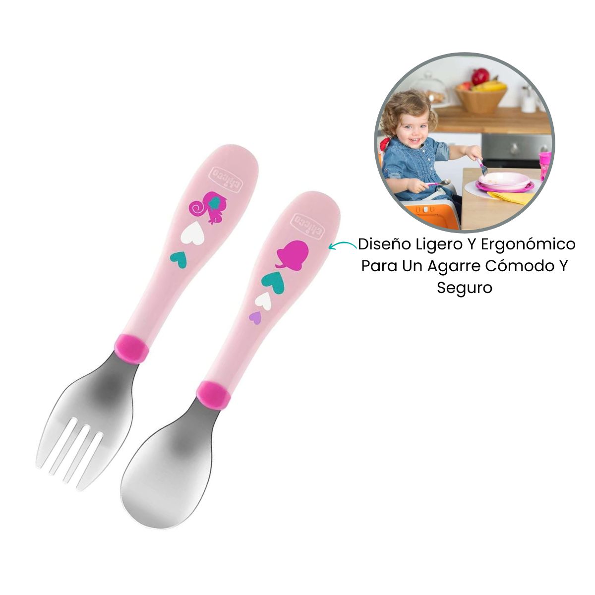 El juego de cubiertos de acero inoxidable Chicco está pensado especialmente para acompañar al bebé en la transición hacia la alimentación independiente. Su tamaño, forma y peso están diseñados para adaptarse perfectamente a las manos pequeñas, ofreciendo una experiencia segura, cómoda y divertida durante las comidas.