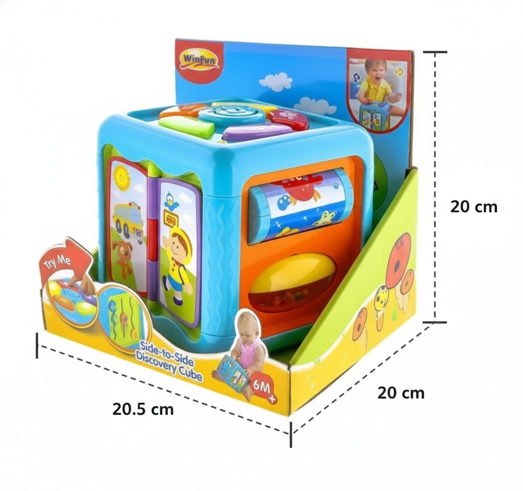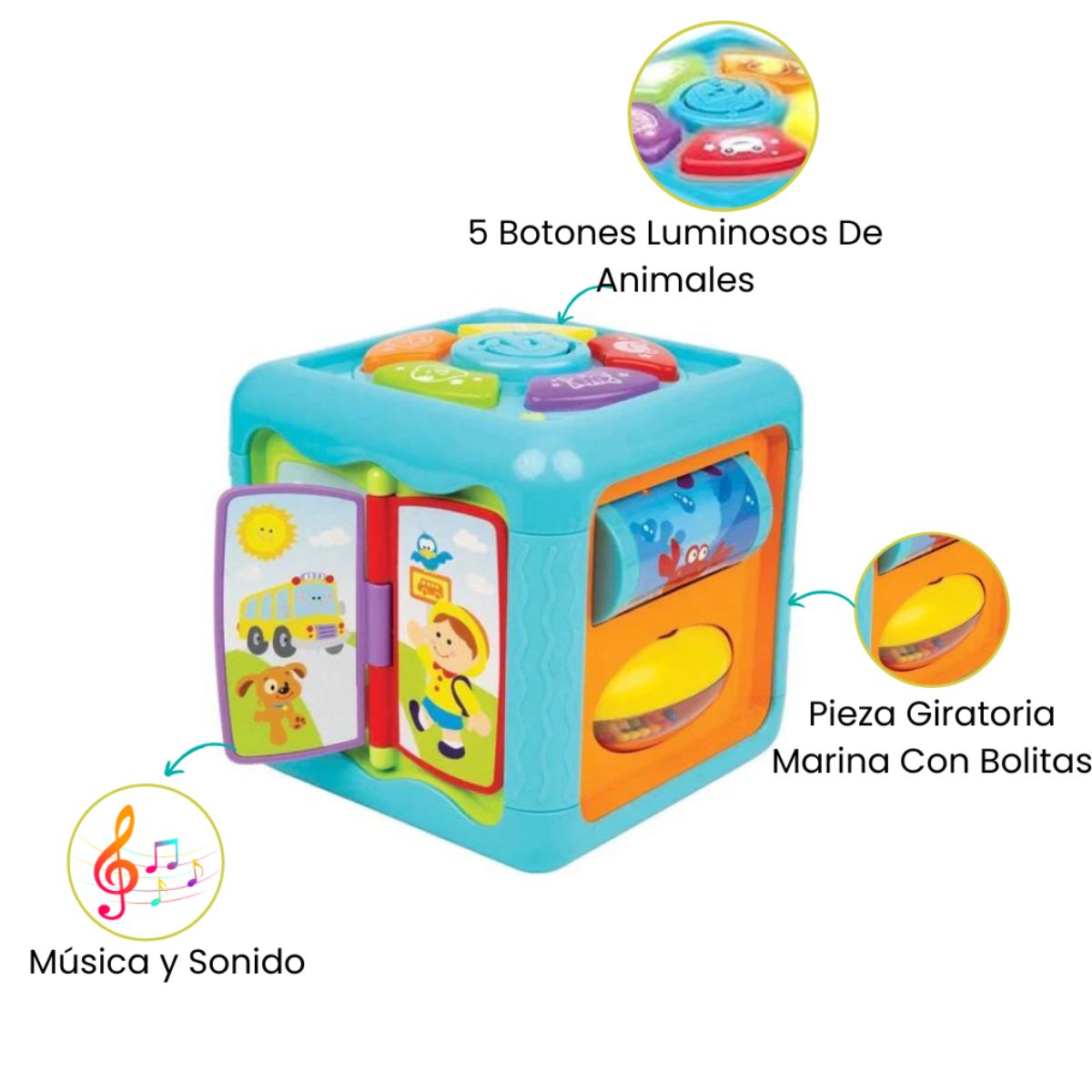 El Cubo de Aprendizaje es un mundo de diversión concentrado en un solo juguete. Cada uno de sus lados ofrece actividades únicas que estimulan los sentidos y apoyan el desarrollo temprano. Con luces, sonidos, música, formas, colores vibrantes, números y palabras, este cubo brinda experiencias interactivas que fomentan la curiosidad, la coordinación y el aprendizaje de manera divertida. ¡Un compañero ideal para el crecimiento de tu pequeño!