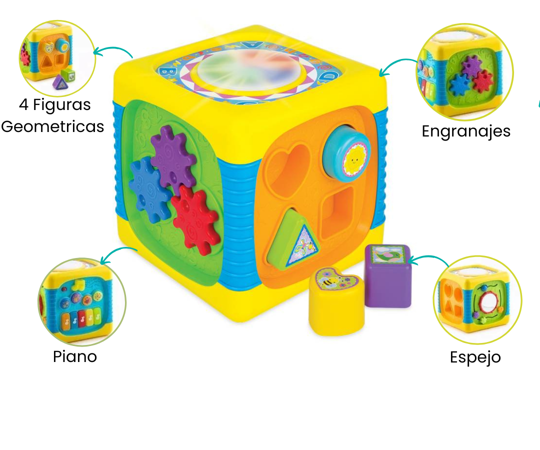 Este juguete ha sido diseñado para ofrecer a los niños una experiencia de juego enriquecedora que va más allá del simple entretenimiento. El cubo combina diversión, música y estimulación para promover un desarrollo integral en los pequeños. Cada lado del cubo presenta actividades educativas y melodías encantadoras que fomentan la creatividad y el aprendizaje.