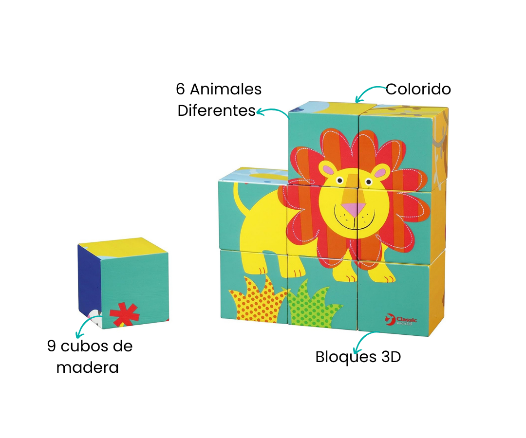 Con este juego de bloques 3D, los niños pueden explorar y reconocer una variedad de animales salvajes en un formato divertido y educativo. Desde leones majestuosos hasta elefantes imponentes, este juego estimula la curiosidad y el aprendizaje mientras los pequeños crean su propio mundo animal en tres dimensiones.