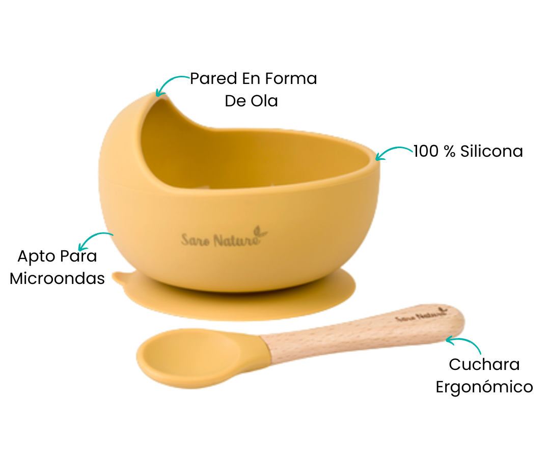 Descubre el Set de Alimentación de Saro, diseñado para facilitar que tu pequeño aprenda a comer por sí solo. Con su pared prolongada en forma de ola, este set ofrece un diseño práctico y original que hace que empujar la comida y llenar cada cucharada sea muy fácil. Fabricado con silicona orgánica de grado alimentario, garantiza la seguridad y la tranquilidad durante la alimentación de tu bebé.