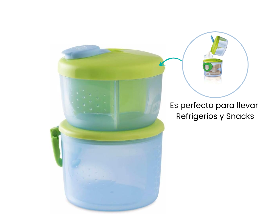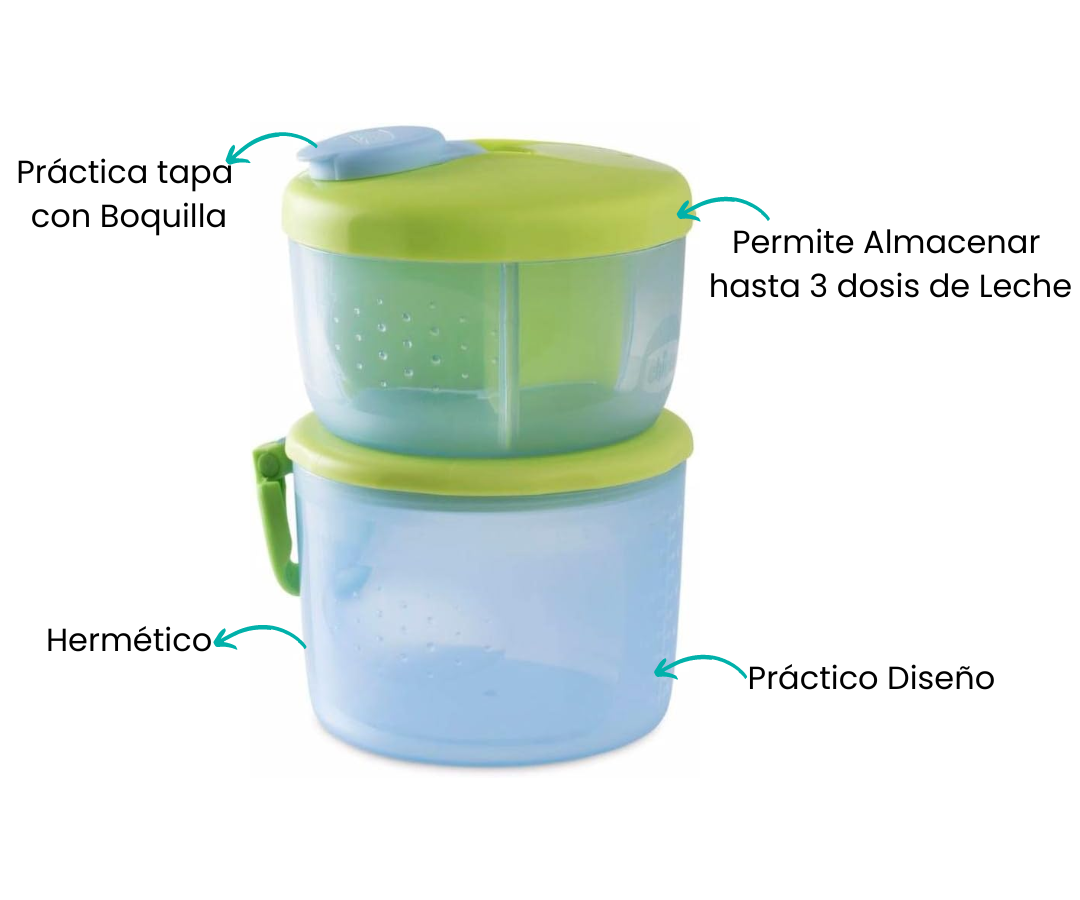 El dosificador de leche en polvo de Chicco es tu aliado perfecto en cada paso del camino con tu bebé. Con capacidad para almacenar hasta 3 dosis de leche en polvo, su diseño inteligente se adapta a las necesidades cambiantes de tu pequeño. Además, su versatilidad permite también guardar alimentos como fruta o yogurt, ofreciéndote comodidad y practicidad en cada momento.