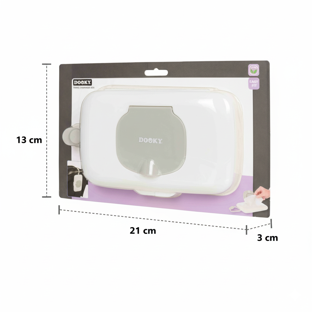 La caja dispensadora de viaje Dooky es el accesorio perfecto para padres activos que necesitan toallitas siempre listas. Con capacidad para 25 toallitas, mantiene su humedad y suavidad para cualquier emergencia durante el paseo. Su diseño inteligente permite abrir, rellenar y cerrar con una sola mano, haciendo todo más rápido y cómodo. Compacta, segura y fácil de usar, es ideal para llevar en la pañalera, el cochecito o el bolso. ¡Un imprescindible para cada salida!