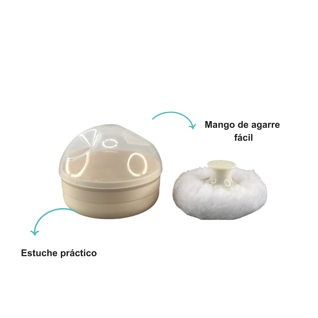 El práctico estuche para talco de bebe facilita la aplicación, el dispensador está diseñado para que tu bebé se sienta cómodo, el mango de agarre fácil ayuda que la aplicación sea más confortable, es suave y delicado ideal para la piel de tu pequeño.