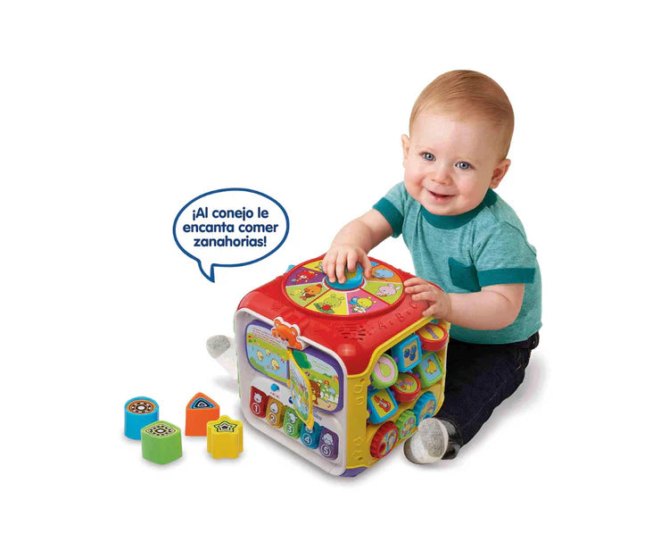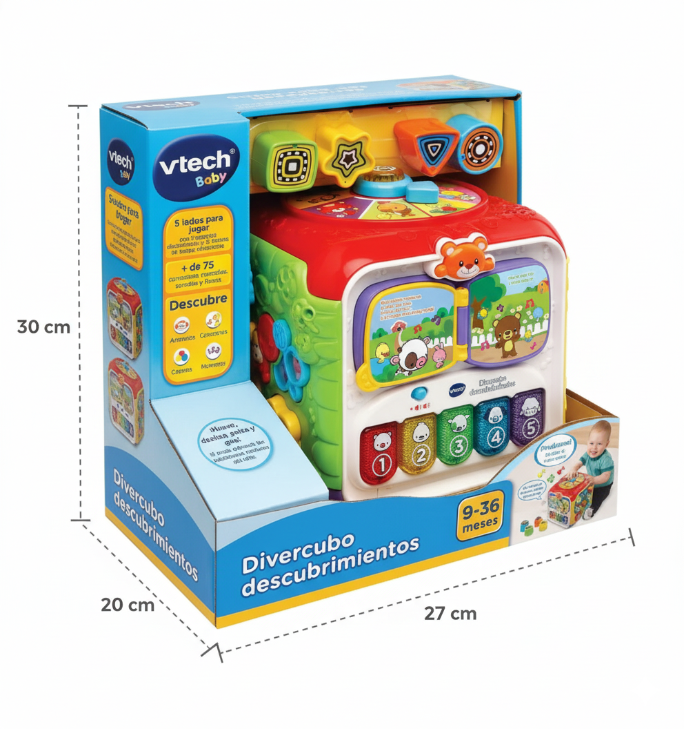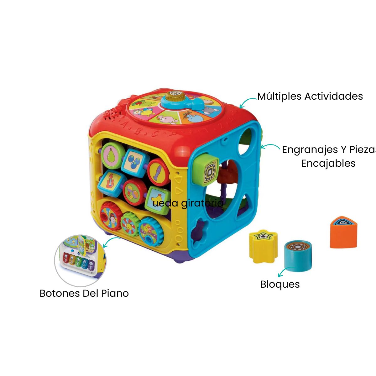 Este cubo interactivo despierta la curiosidad del pequeño y lo acompaña en horas de entretenimiento educativo. Cada una de sus actividades invita a explorar, descubrir y desarrollar habilidades esenciales de forma natural y divertida. Un juguete versátil que no solo entretiene, sino que también estimula el desarrollo integral, convirtiéndose en un aliado perfecto para el aprendizaje desde los primeros años