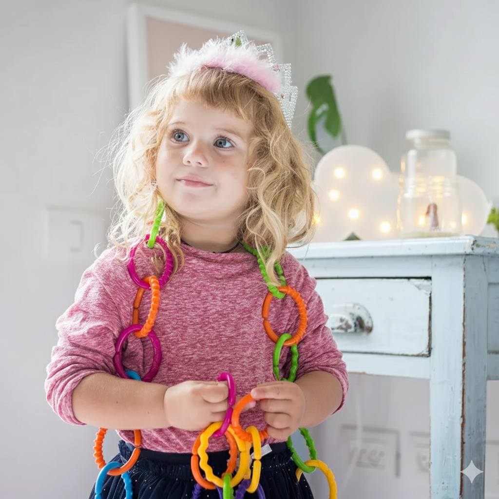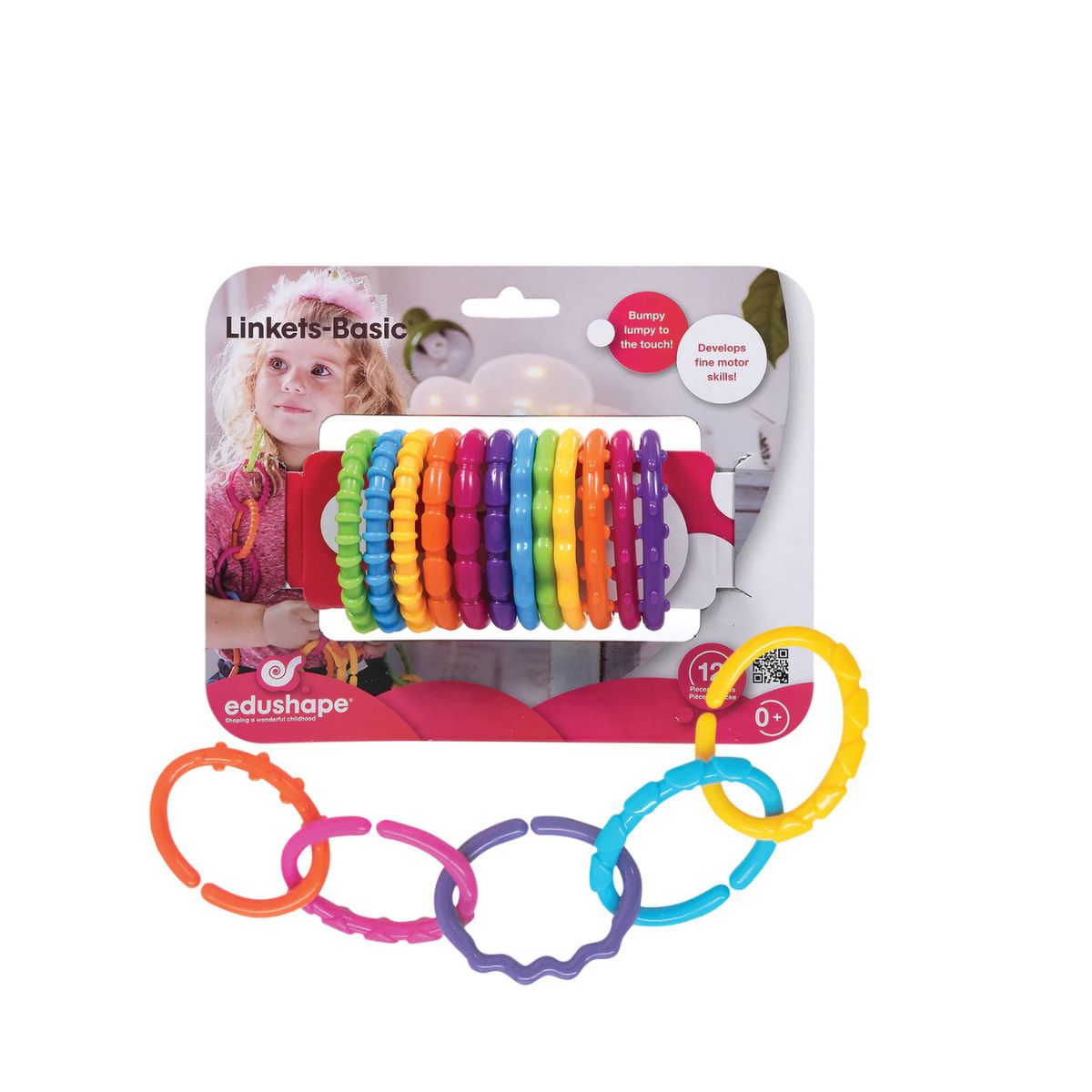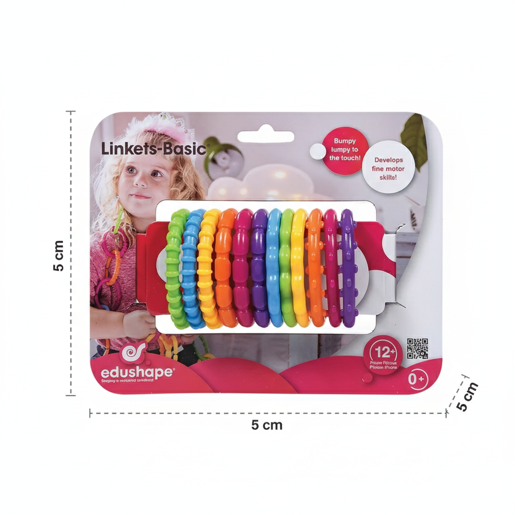Los Enlaces Sensoriales Edushape invitan a los pequeños a descubrir el color, la textura y el movimiento mientras desarrollan sus habilidades motoras finas. Cada anillo cuenta con una superficie texturizada que estimula el tacto y promueve la exploración sensorial. Su tamaño y forma son perfectos para las manos pequeñas, fomentando la coordinación y la destreza manual de manera divertida.