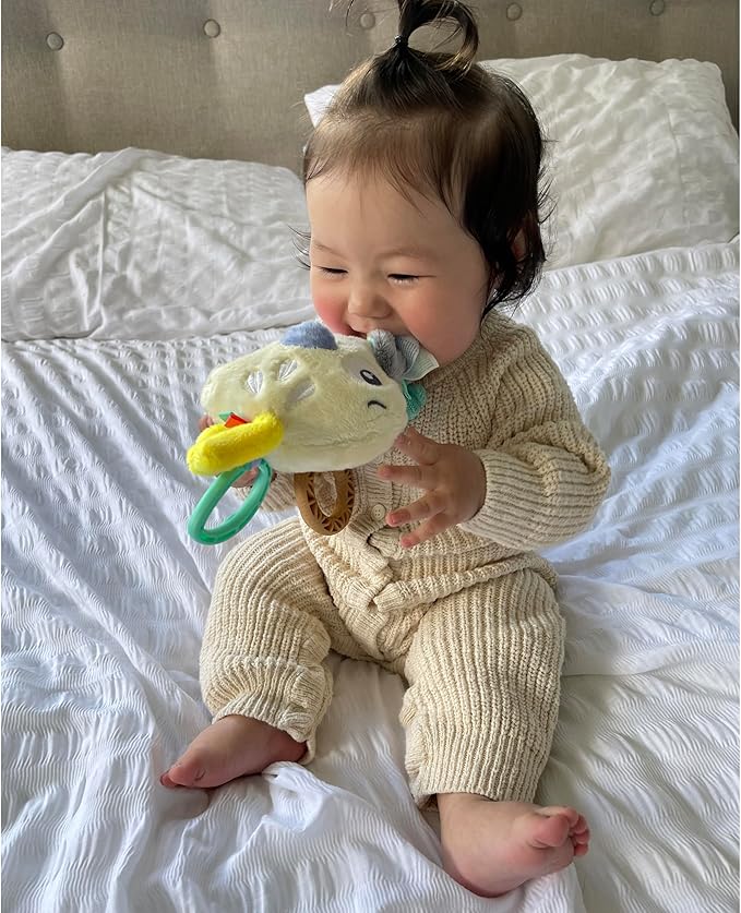 - Alivio de los dientes: el anillo de mordedor texturizado proporciona una contrapresión relajante sobre las encías sensibles.