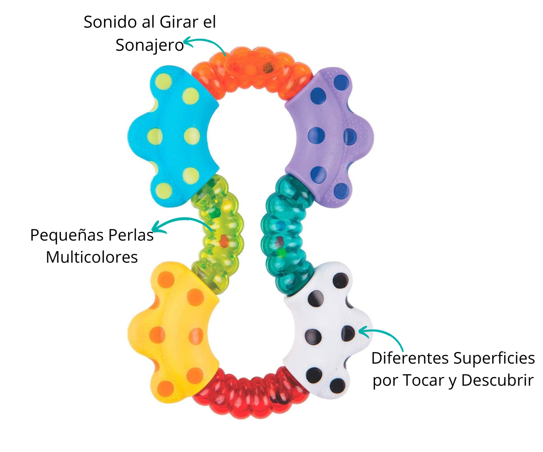 En la etapa inicial de crecimiento, los niños pequeños tienen una necesidad innata de explorar y descubrir su entorno, y es a través del juego que desarrollan una comprensión más profunda del mundo que los rodea. El colorido sonajero ha sido diseñado para nutrir esta curiosidad natural, proporcionando a los pequeños una experiencia enriquecedora mientras exploran y aprenden.