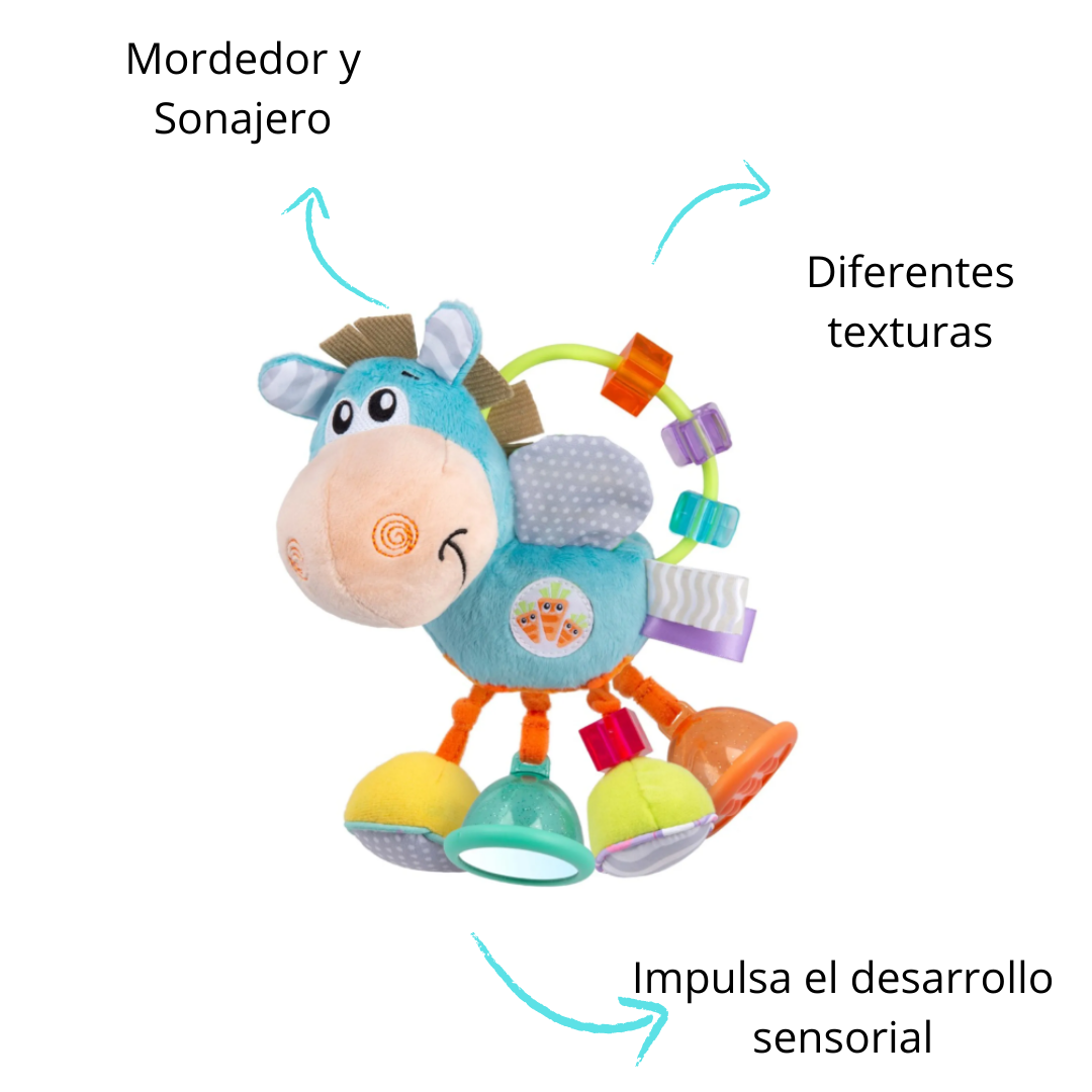 Este sonajero interactivo mantendrá a los pequeños entretenidos a la vez que estimula su desarrollo sensorial. Además, desarrolla la motricidad fina mientras explora la variedad de cuentas, sonajeros, texturas y formas, mientras que las cuentas con bultos alivian el dolor de encías. ¡Solo tienes que añadir un clip para asegurar Clip Clop al cochecito o la silla del coche y disfrutar de aventuras en movimiento!