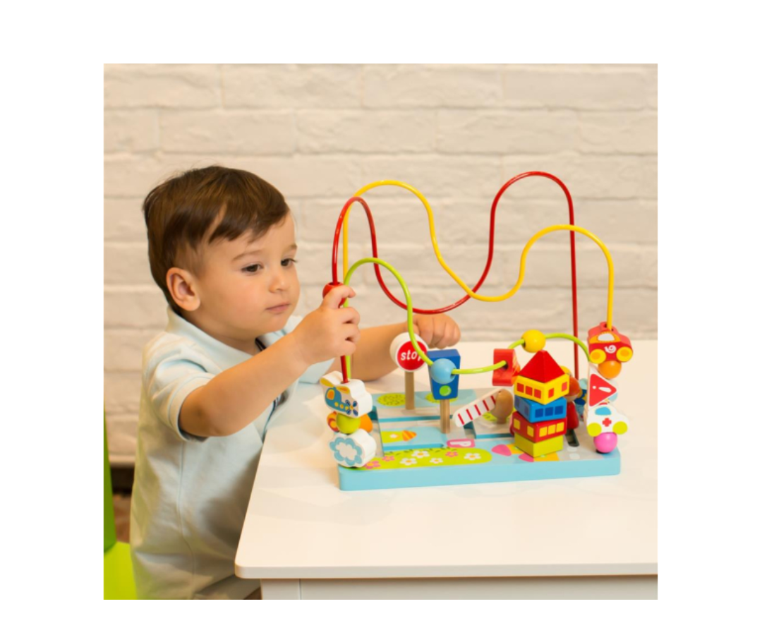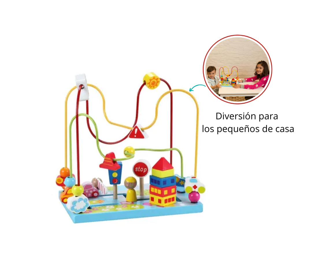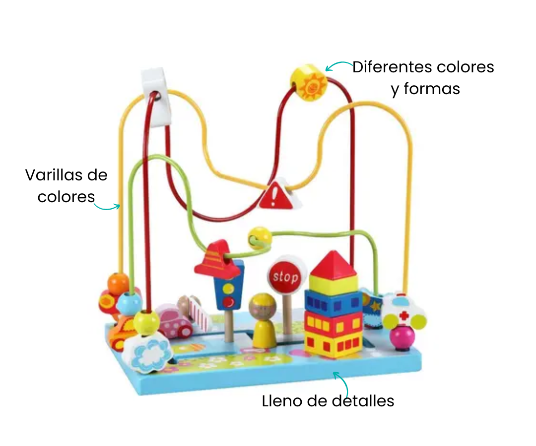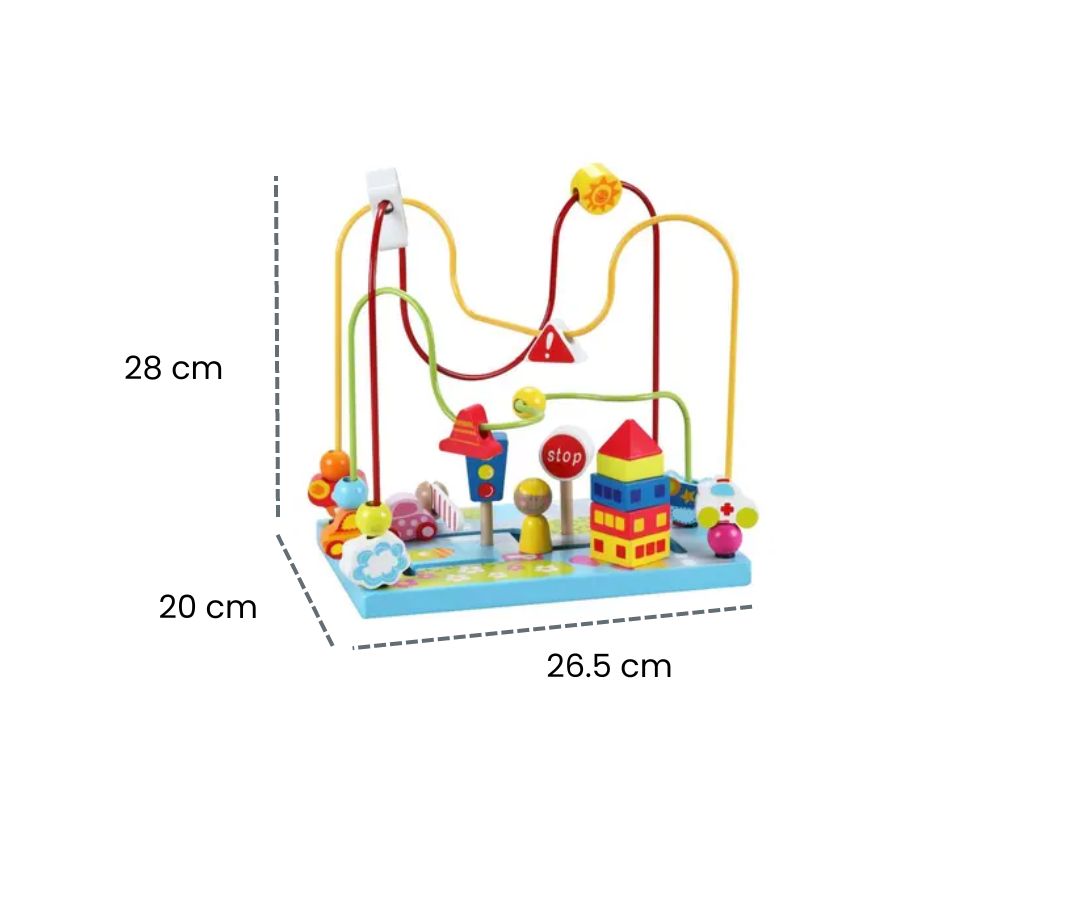 Este juguete de cuentas con temática de transporte ofrece diversión y aprendizaje. Con un avión, una ambulancia, un coche y edificios, los niños pueden explorar diferentes medios de transporte mientras juegan con las cuentas. La creatividad y la coordinación se fomentan mientras los niños se desplazan en coche o ambulancia a través de las cuentas.