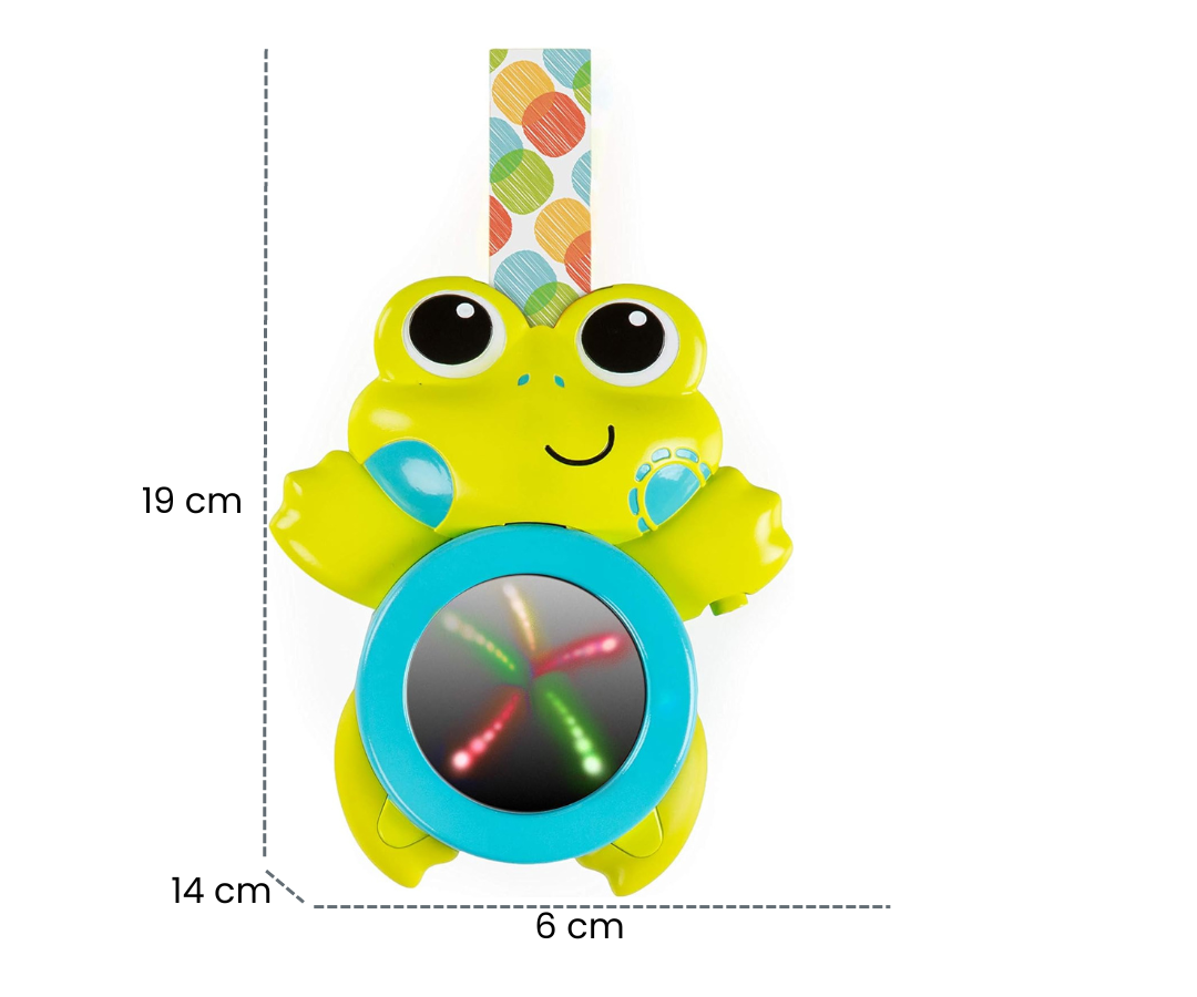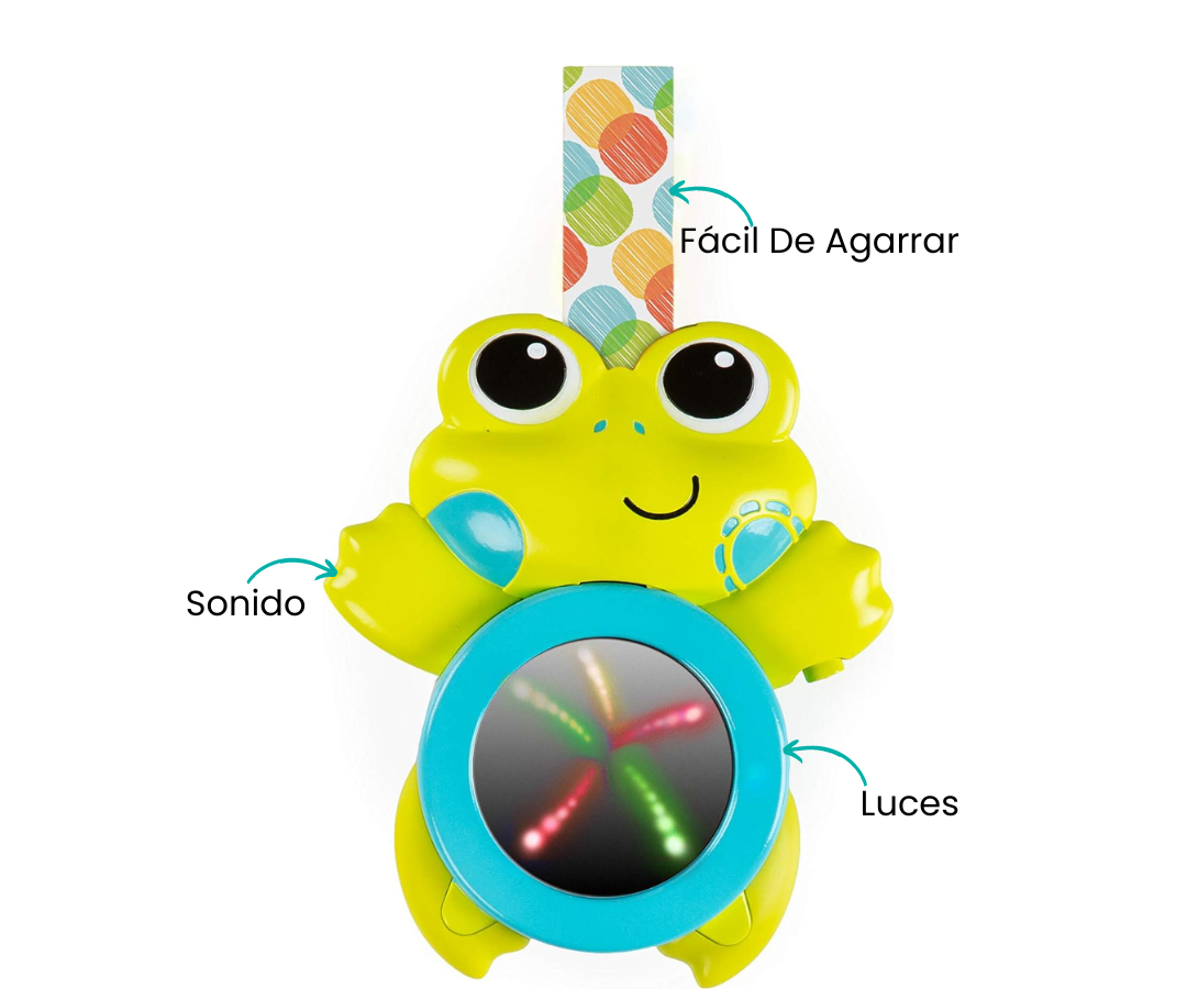 Premia los movimientos de tu bebé con un espectáculo de luces y sonidos de esta maravillosa rana , que se ilumina con colores y sonidos alegres cuando tu pequeño se sacude. Con luces LED en su barriga, esta ranita fascinará a tu bebé en casa o durante los viajes. Además, la correa de tela se asegura fácilmente a cochecitos, bolsos y portabebés para diversión en cualquier lugar. Cada movimiento es una fiesta para tu bebé con este emocionante espectáculo.