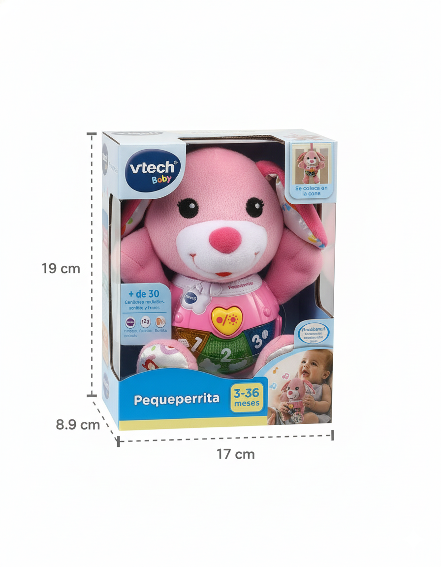 Descubre la ternura y la diversión con Peque Perrito de VTech, el compañero ideal para los primeros juegos interactivos del bebé. Con solo presionar sus botones, enseña números, canciones y frases educativas que estimulan el aprendizaje temprano. Su textura suave invita a los abrazos, brindando confort y compañía en todo momento. Perfecto para llevar a todas partes y fomentar el desarrollo sensorial y emocional del niño.