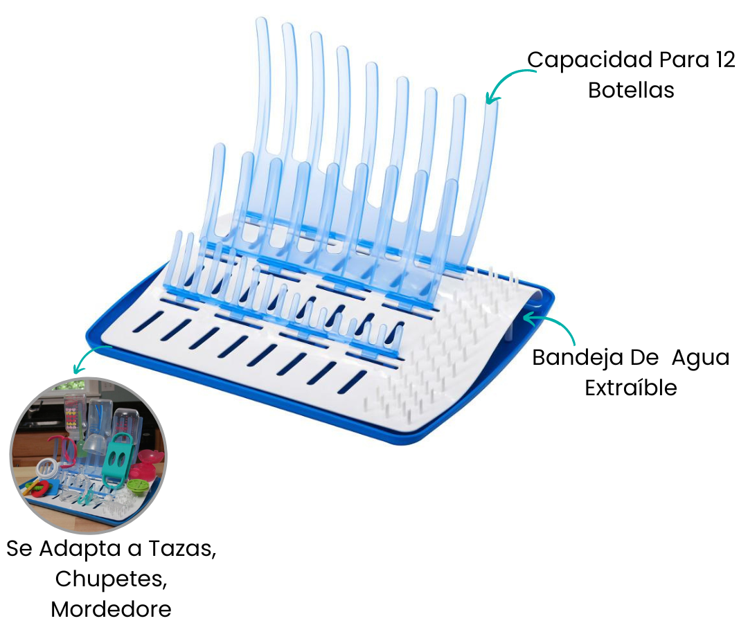 El escurridor universal de Dr. Brown's es la solución perfecta para el secado de todas tus botellas y accesorios. Su diseño innovador y universal garantiza un ajuste perfecto para cualquier producto de la marca Dr. Brown's, ofreciendo una conveniencia inigualable. Con capacidad para múltiples elementos a la vez, este escurridor maximiza el espacio y facilita el proceso de secado.