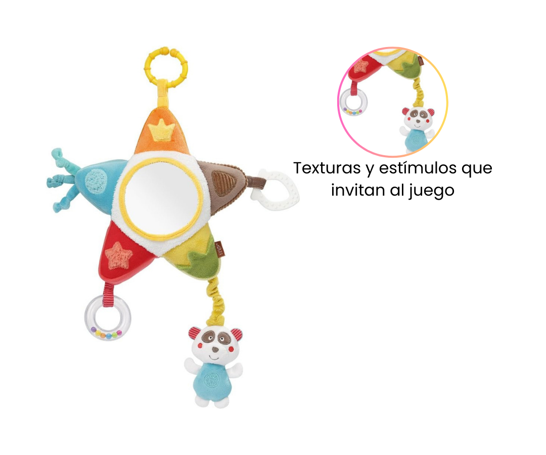 Un juguete de felpa especialmente diseñado para estimular los sentidos del bebé, con un sinfín de actividades sensoriales, desde el sonajero que emite un alegre tintineo al apretarlo, hasta el módulo de vibración que añade una experiencia táctil única.