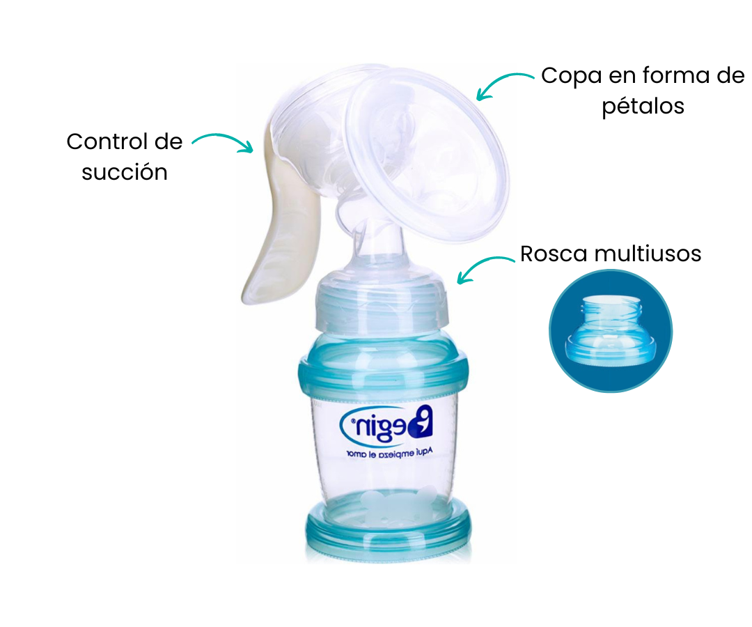 El extractor de leche ofrece una experiencia personalizada al permitirte controlar el nivel de succión y con la rosca multiusos, podrás conectar el extractor, los vasos de almacenamiento y las tetinas de manera eficiente, proporcionándote una solución completa y conveniente.