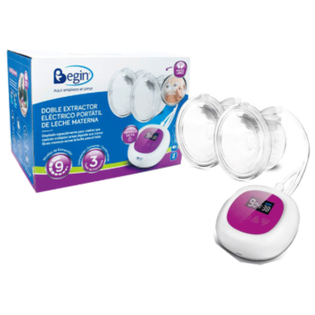Extractor eléctrico manos libres, con 9 niveles de extracción, 3 niveles de frecuencia, estimulación, extracción y succión natural, pantalla táctil, incluye 10 bolsas recolectoras de leche.