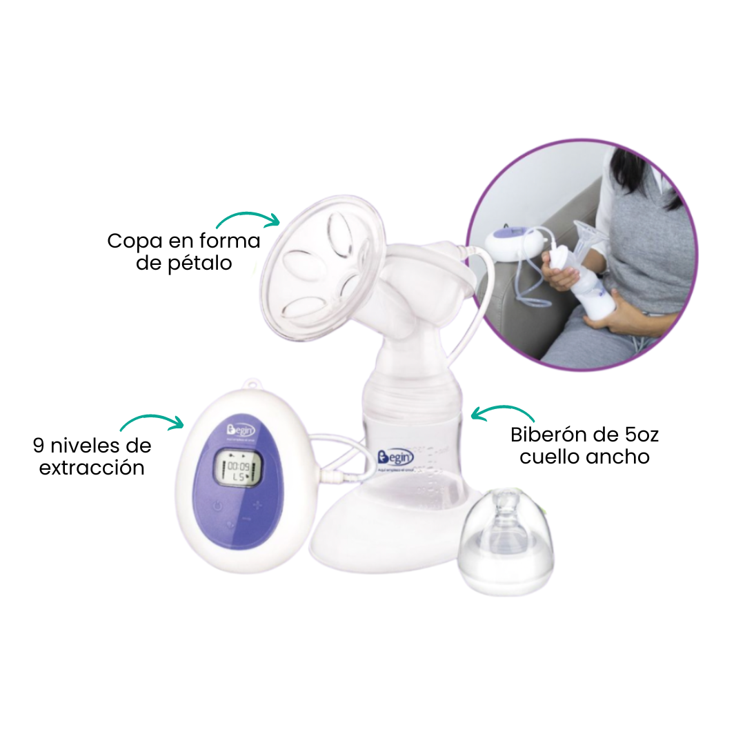 El extractor de leche eléctrico Begin te ayuda a ahorrar tiempo y le permite a tu bebé disfrutar de los beneficios de la leche materna.
