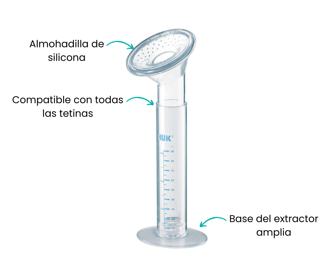 El extractor, con su diseño suave y sencillo, ofrece un movimiento de extracción agradable y delicado, perfecto para un uso ocasional. Su suave presión de succión ofrece comodidad y corrige los pezones invertidos. Además, el cilindro es compatible con todas las tetinas, asegurando una experiencia sin complicaciones en cada uso.