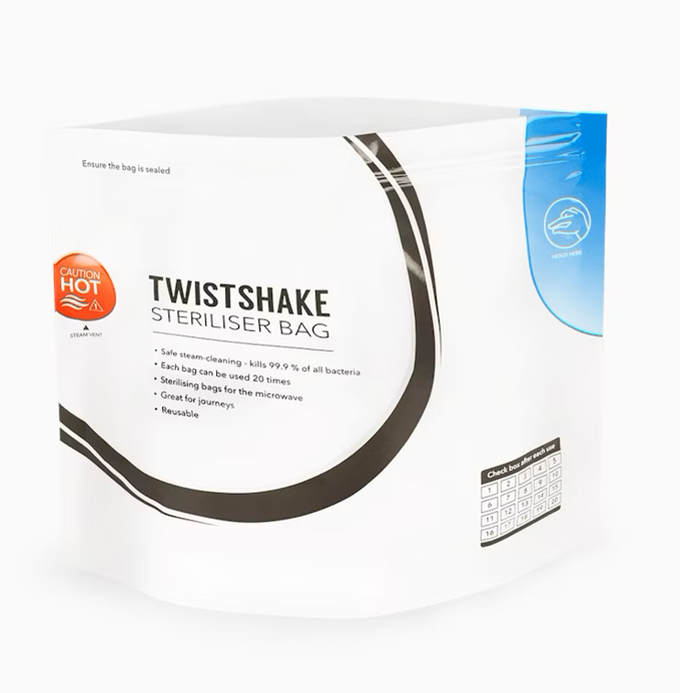- Las bolsas esterilizadoras Twistshake vienen en un juego de cinco por paquete.